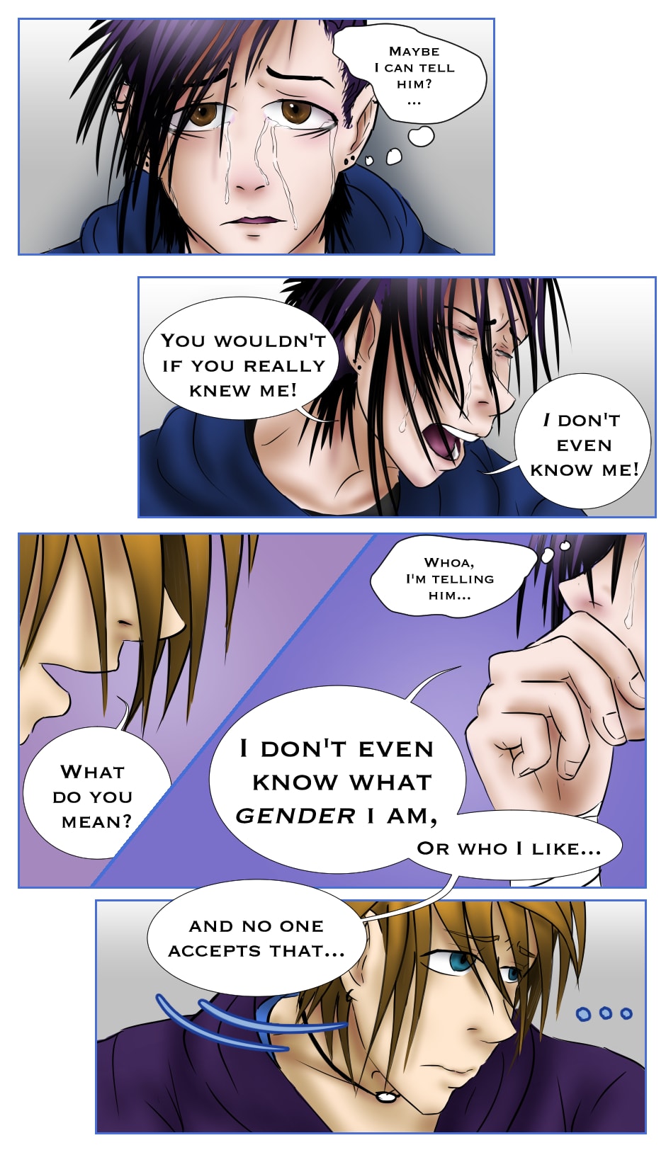 A suicidal college student struggles with his sexuality and gender identity. Upon meeting another student who happens to be pansexual, they immediately have the hots for each other.