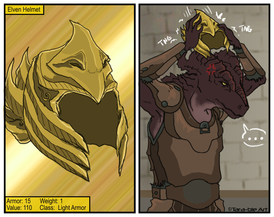 This particular Dragonborn has quickly discovered that most of the gear she finds in Skyrim isn't quite fit to Argonians...