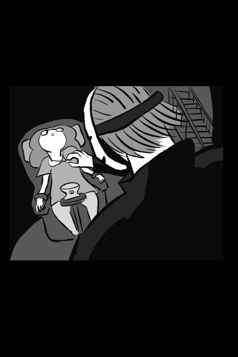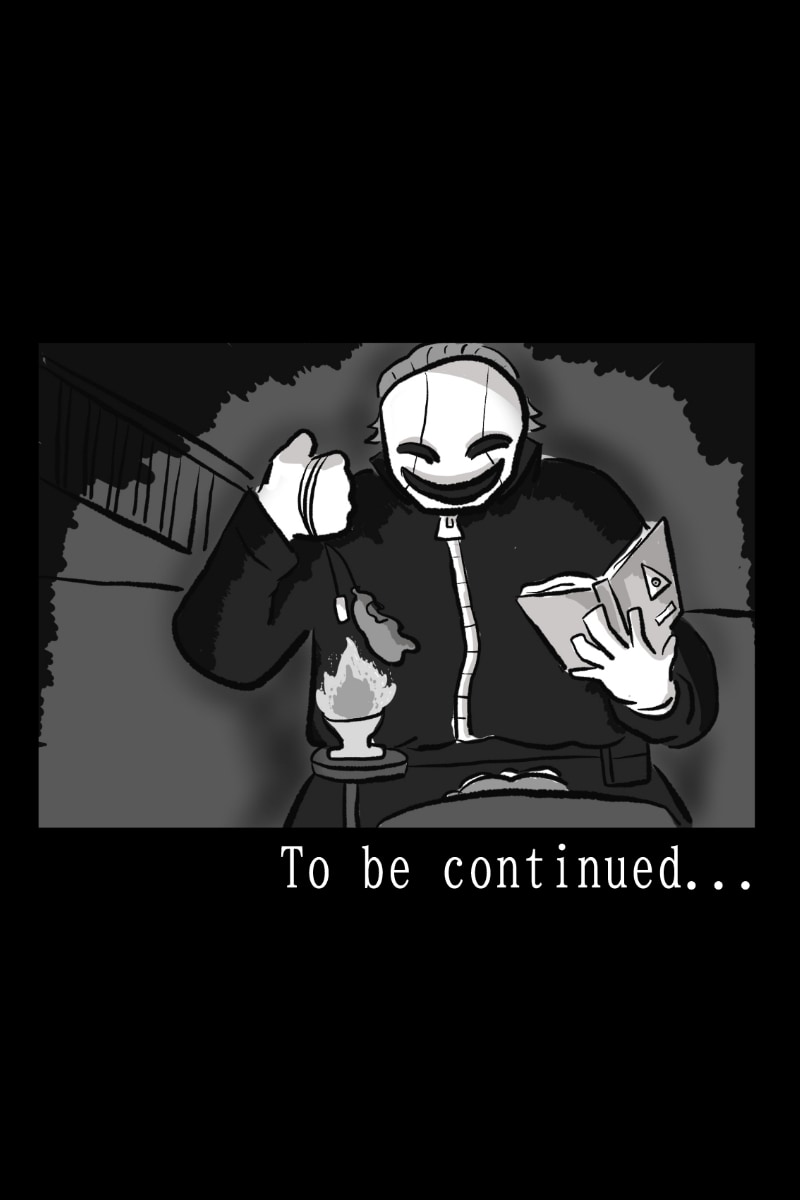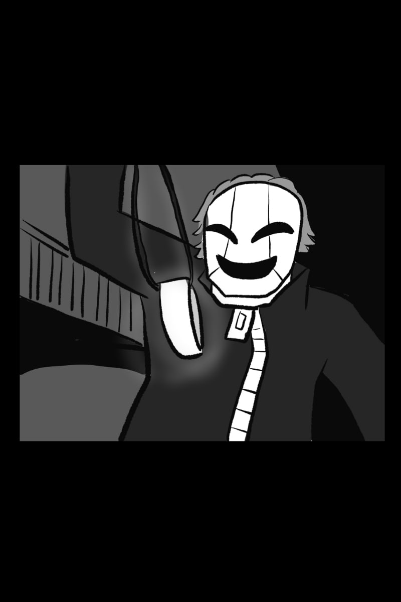 The masked person comes down and takes Shelly's ring and performs some cult ritual.