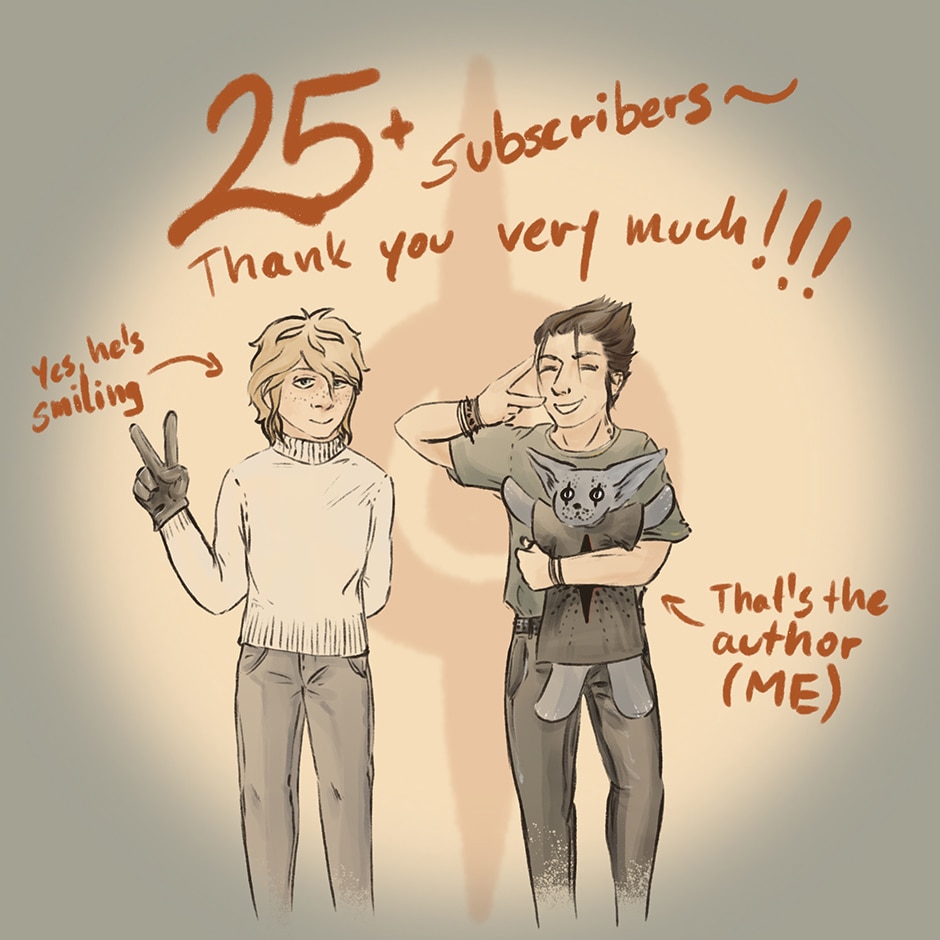 Hey hey! ~! ~Thank you for all your interest in my story!! We have reached the amount of 25 persons and it's really important to me! Wonder if I can have more? x33 thank you very much! ~