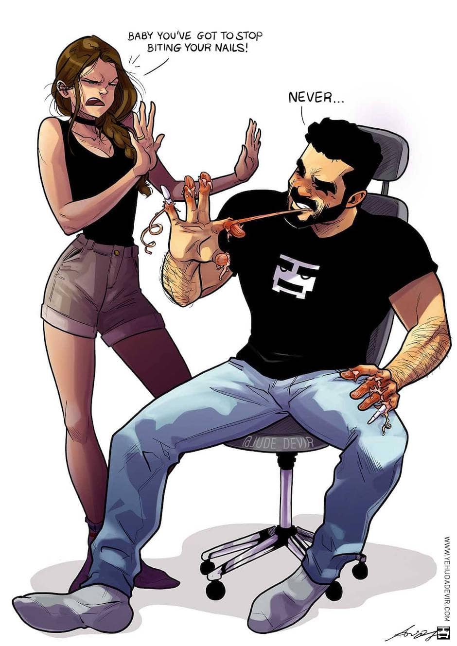 Yehuda and Maya Devir, both graduated from Bezalel, Academy of Art and Design Jerusalem, comic artists and the creators of the popular web comics "One of Those Days". The couple describes moments from their married life through fun and relateble illustrations.