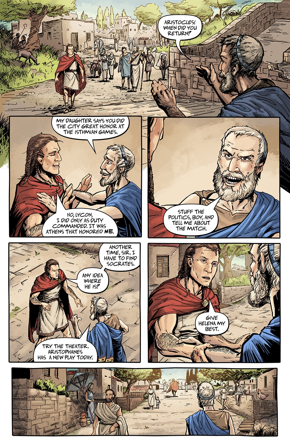 POLIS: The Trial of Socrates is a three-part historical graphic novel that takes place in ancient Athens. It's the story of how one of the greatest free thinkers in the ancient world was executed by the era's most democratic city. It also tells the story of how his student Plato transformed from an aristocratic politician into the founder of Western philosophy.