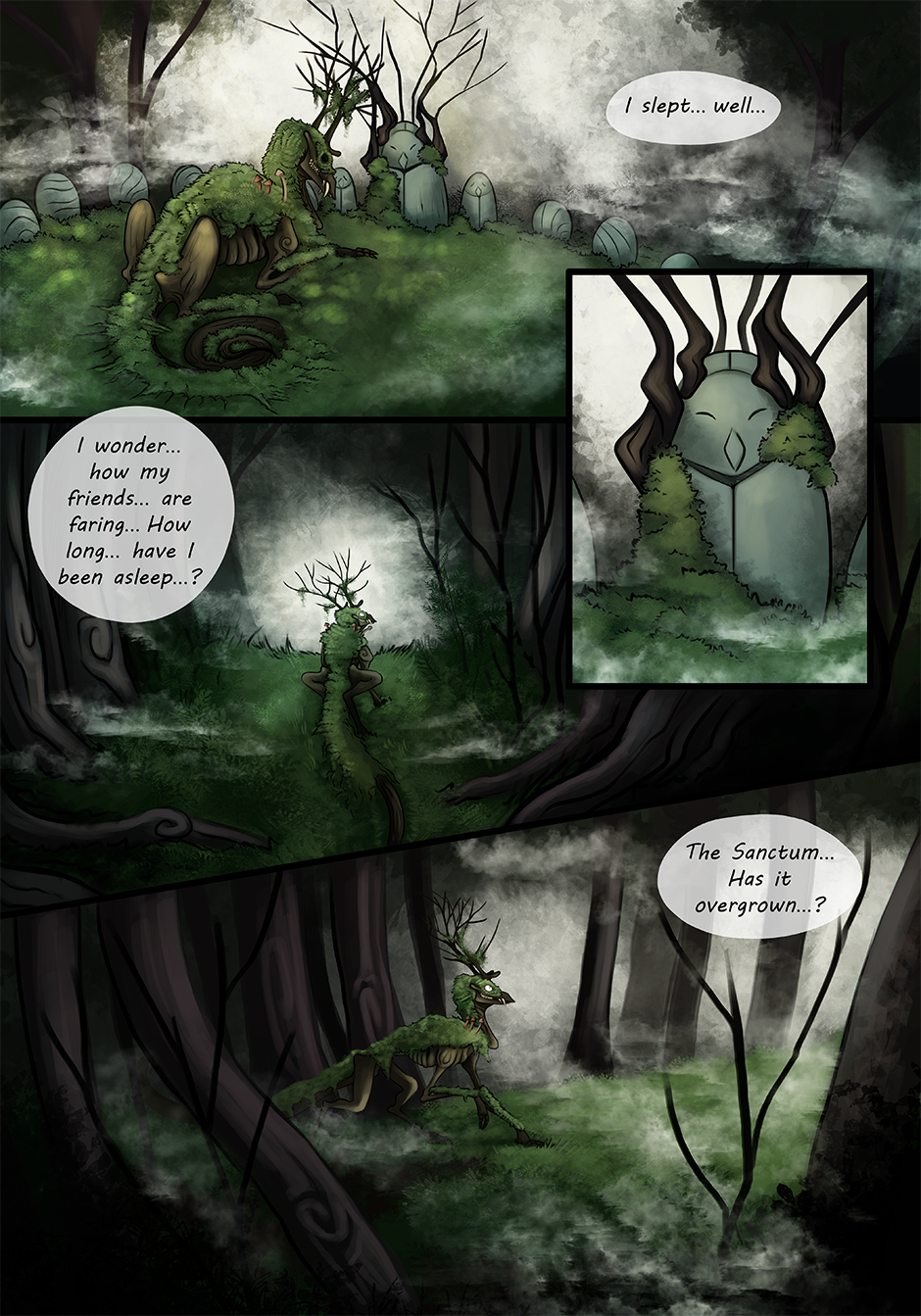 The misty pathways of the Sanctum are normally thriving with life, spirits and songs from the forest. But so far, there is only the Beast. How strange...