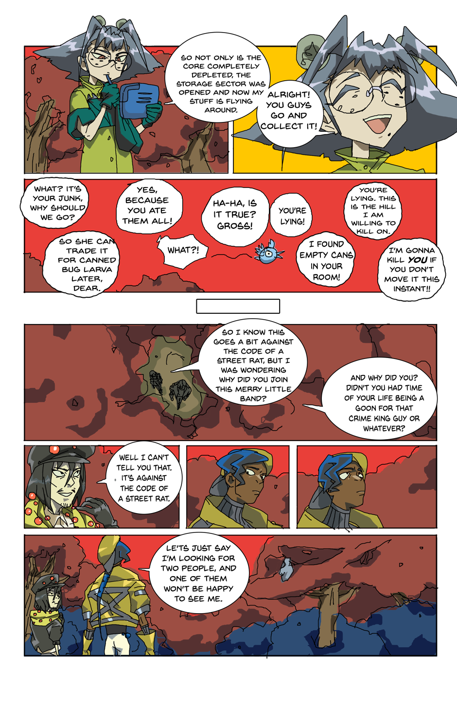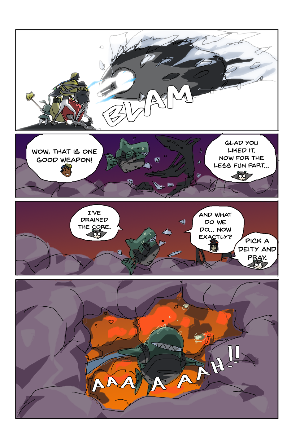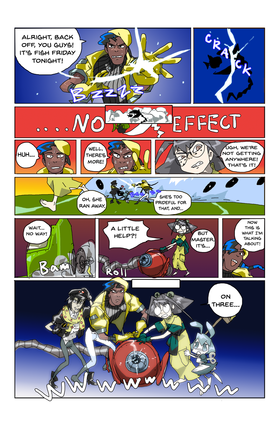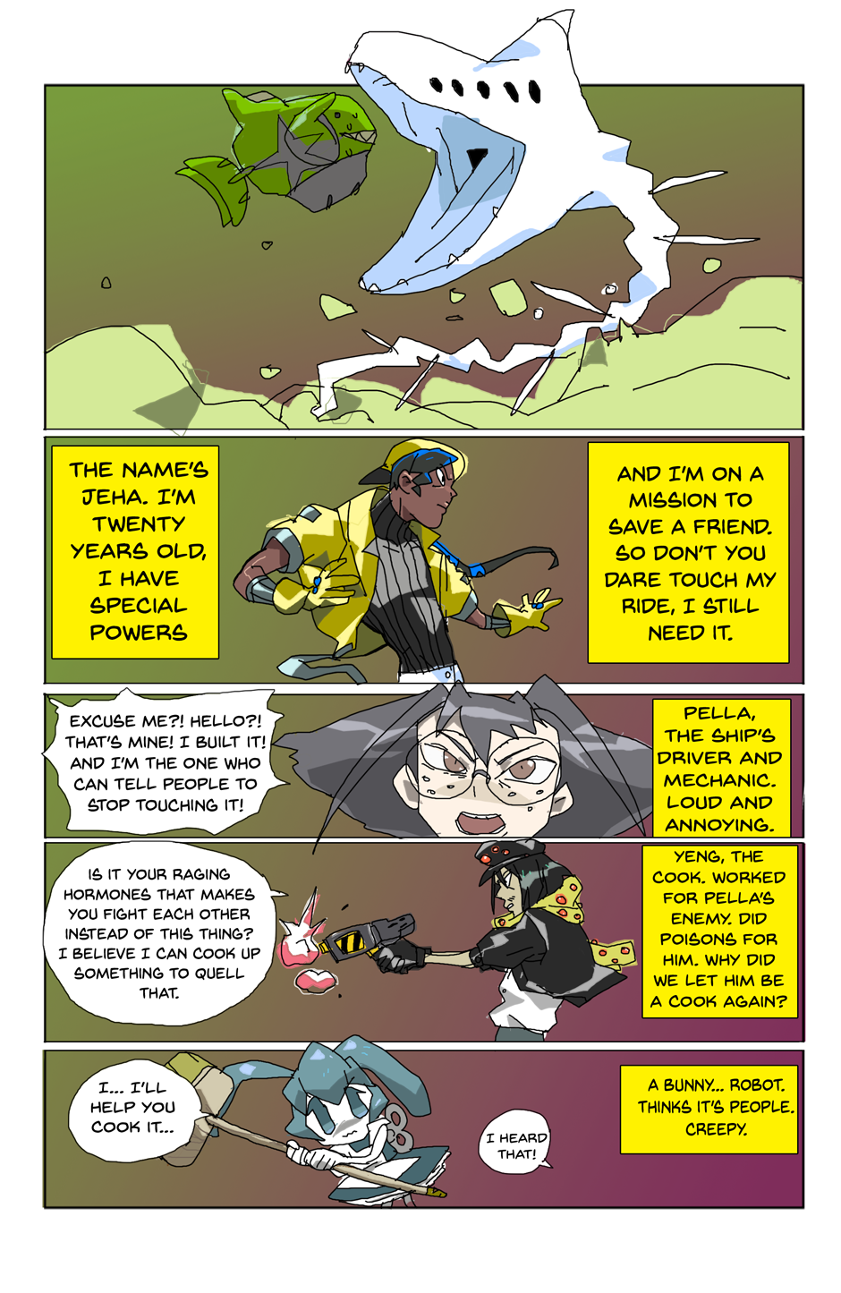 Gang unknowingly gets hit with blast from the past and falls off the ship. Again. As you do. (The character names, bit of their personalities and designs are different here. New day, new me.)