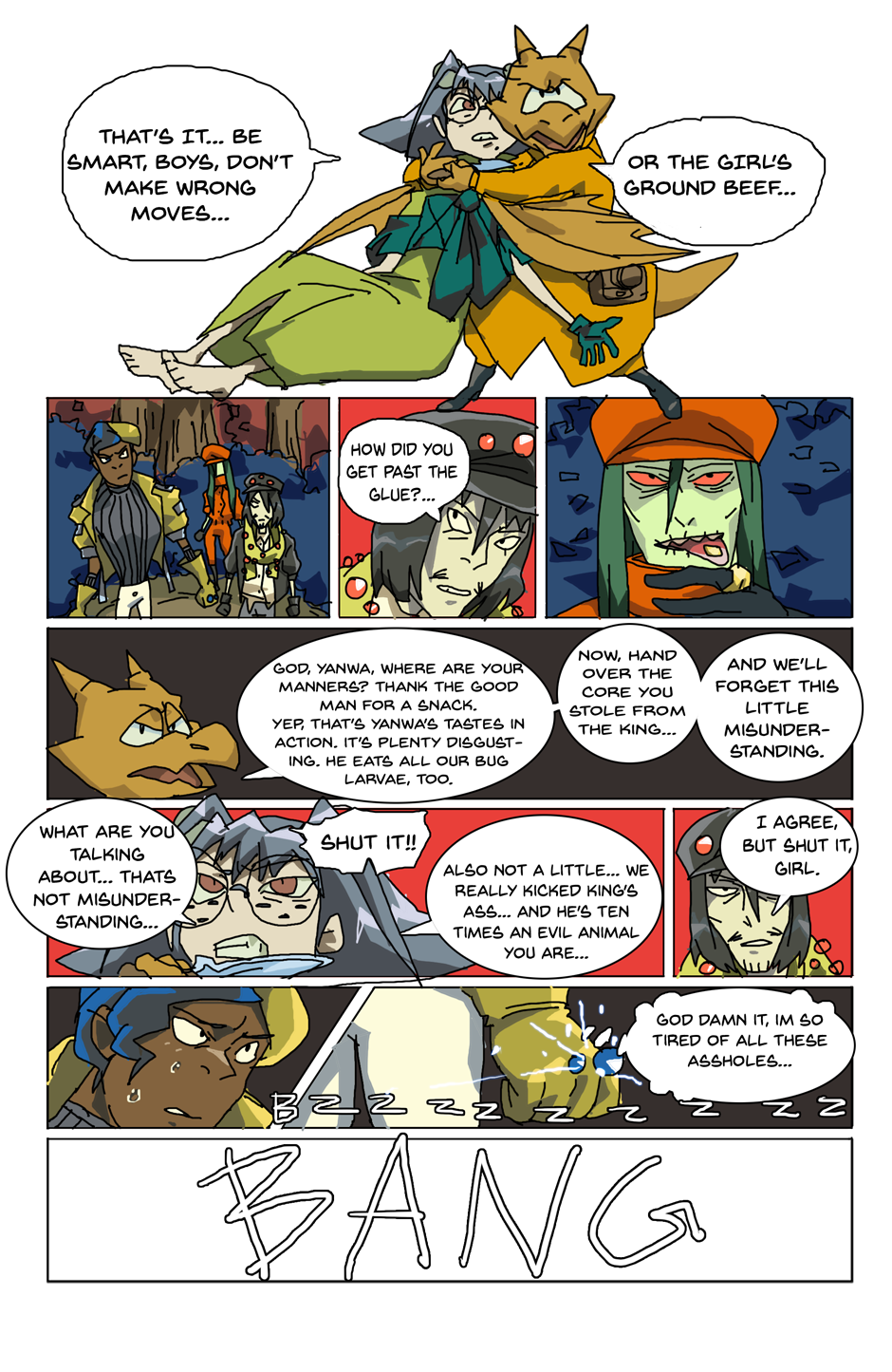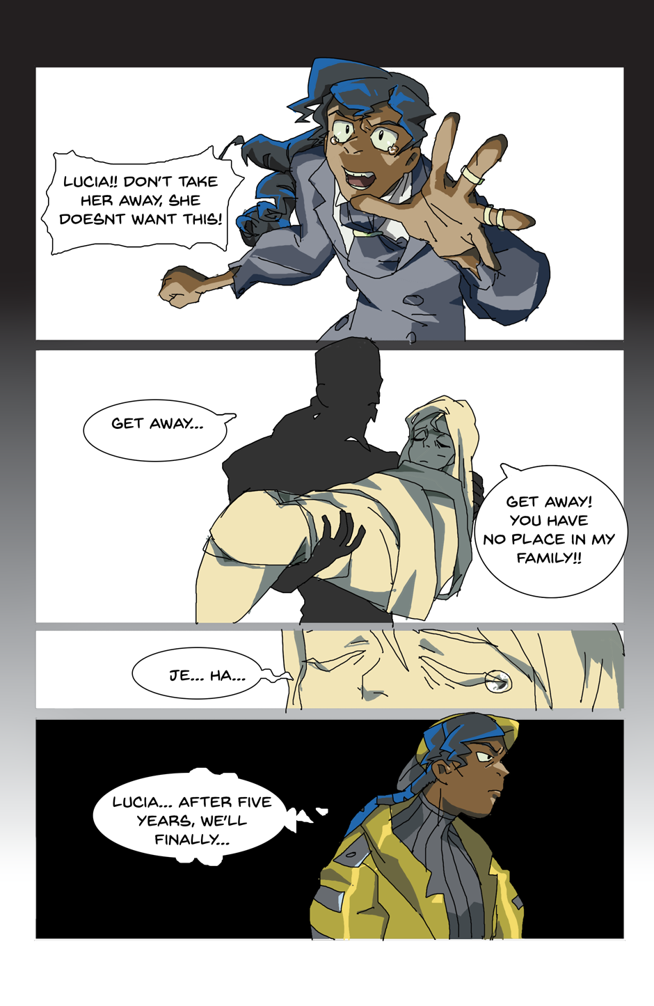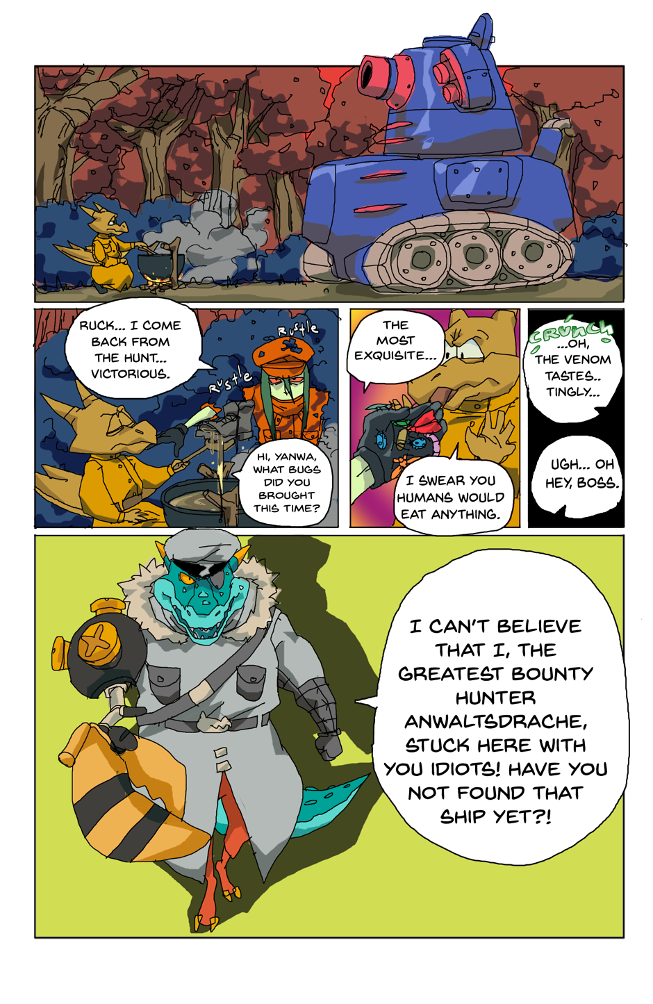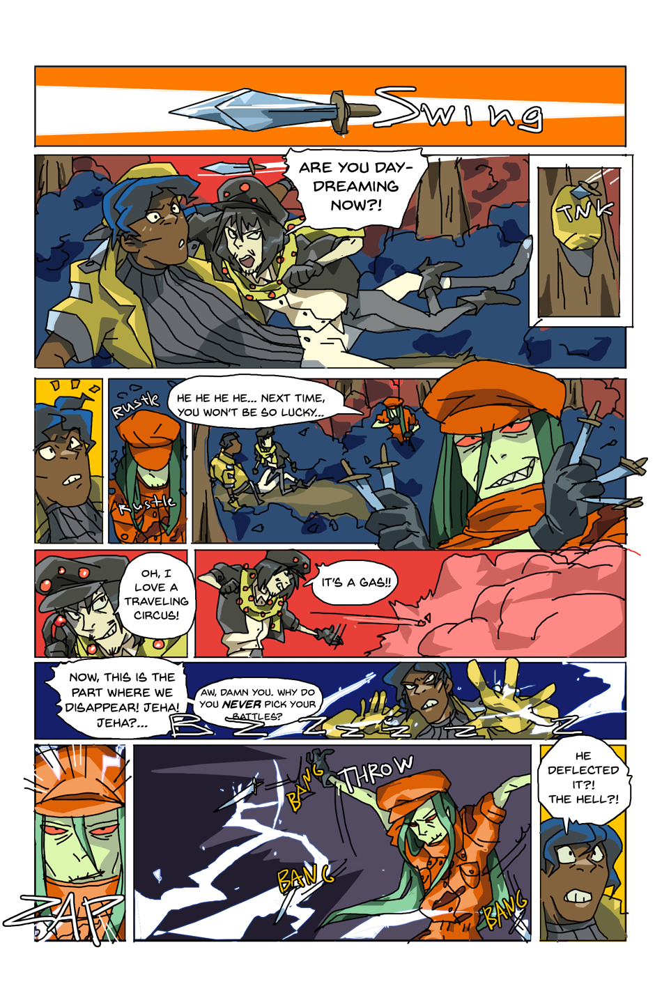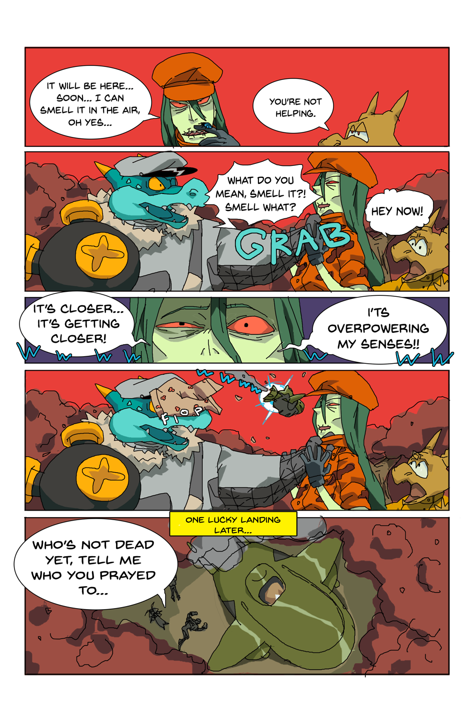 Gang unknowingly gets hit with blast from the past and falls off the ship. Again. As you do. (The character names, bit of their personalities and designs are different here. New day, new me.)