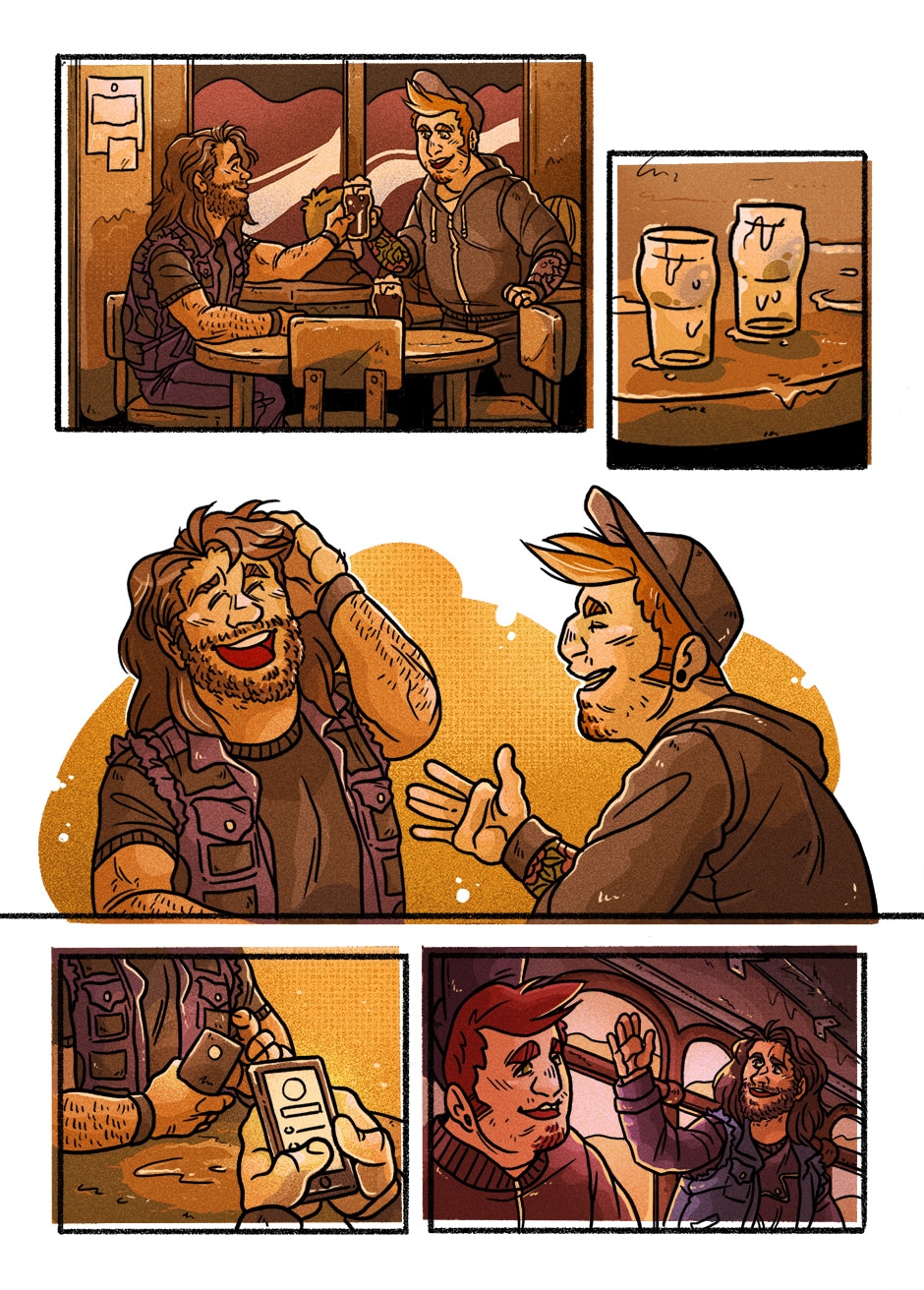 A flashback to Charlie's and Rob's evening in the pub.