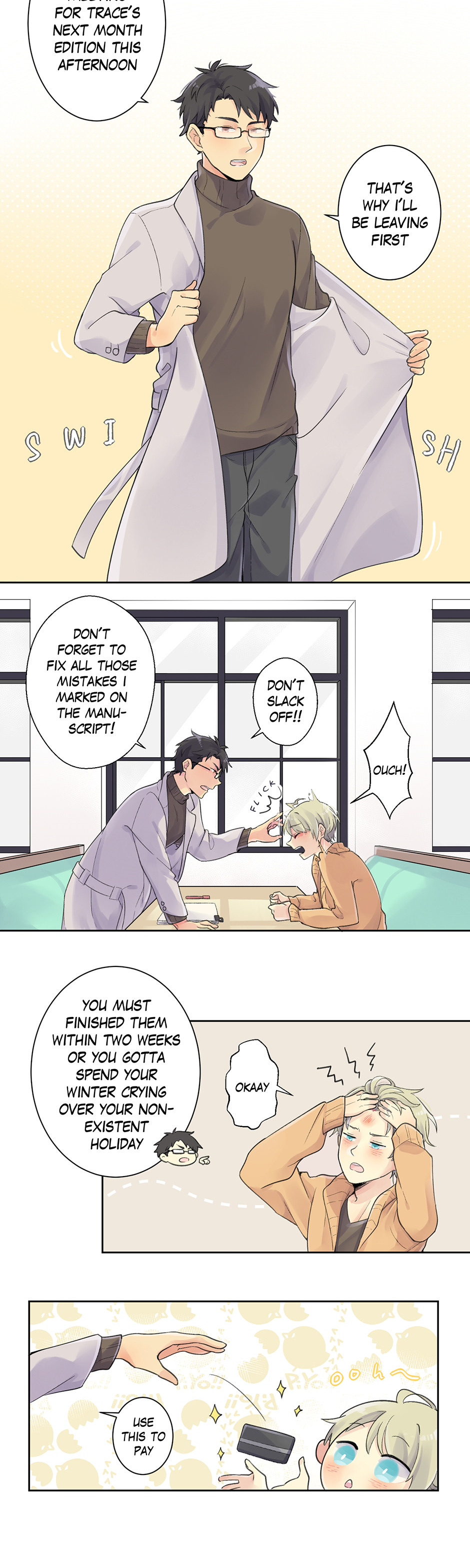 Honestly, it feels a bit weird for me to continue while changing the art style. Doesn't it look like different person's work? Though I really hope you guys still like my current art style ;;A;; For the next chapter i think i'll update every once a month, around mid or the end of the month if there's nothing urgent coming. I hope you guys enjoy this chapter.