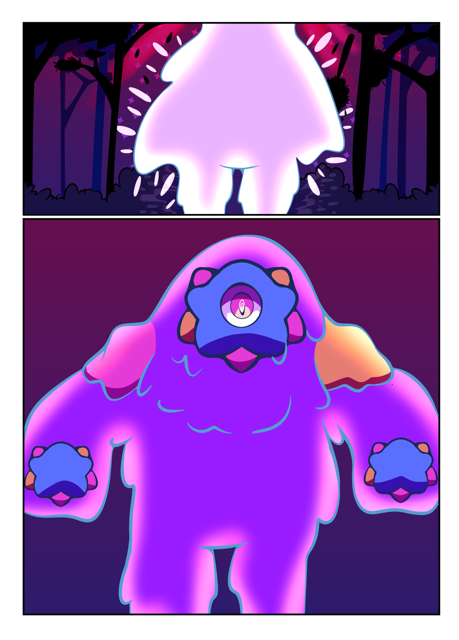 Fun fact: In an earlier draft of the story, the pond monster was going to already have eyes floating around in it when it was introduced as just a weird body of water. I decided I wanted it to be less obviously evil.