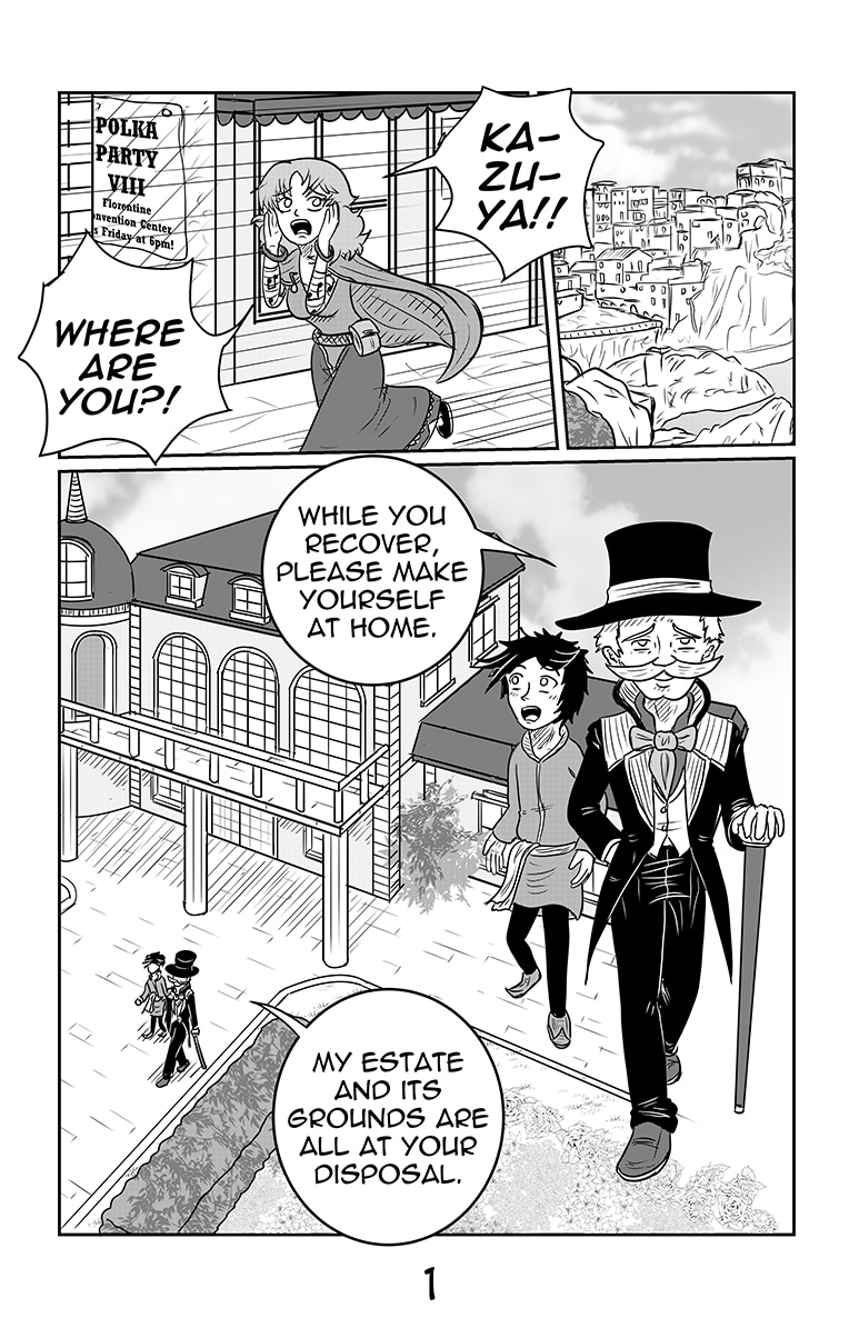 Ithica is back for volume 3! Where we left off, Carric and Kazuya fell off a cliff and then disappeared! (Read right to left)