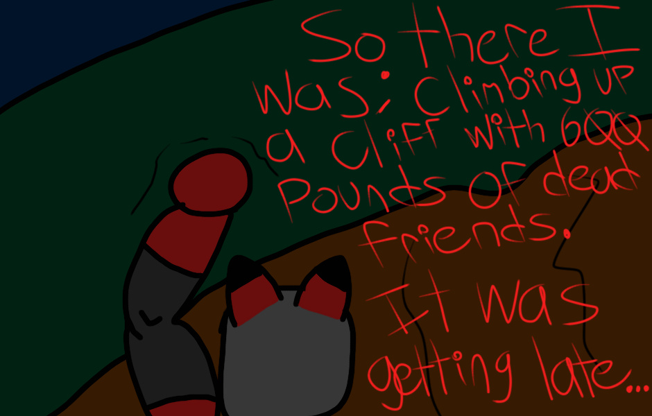 He's Cliff Hanger; hanging from a cliff!
