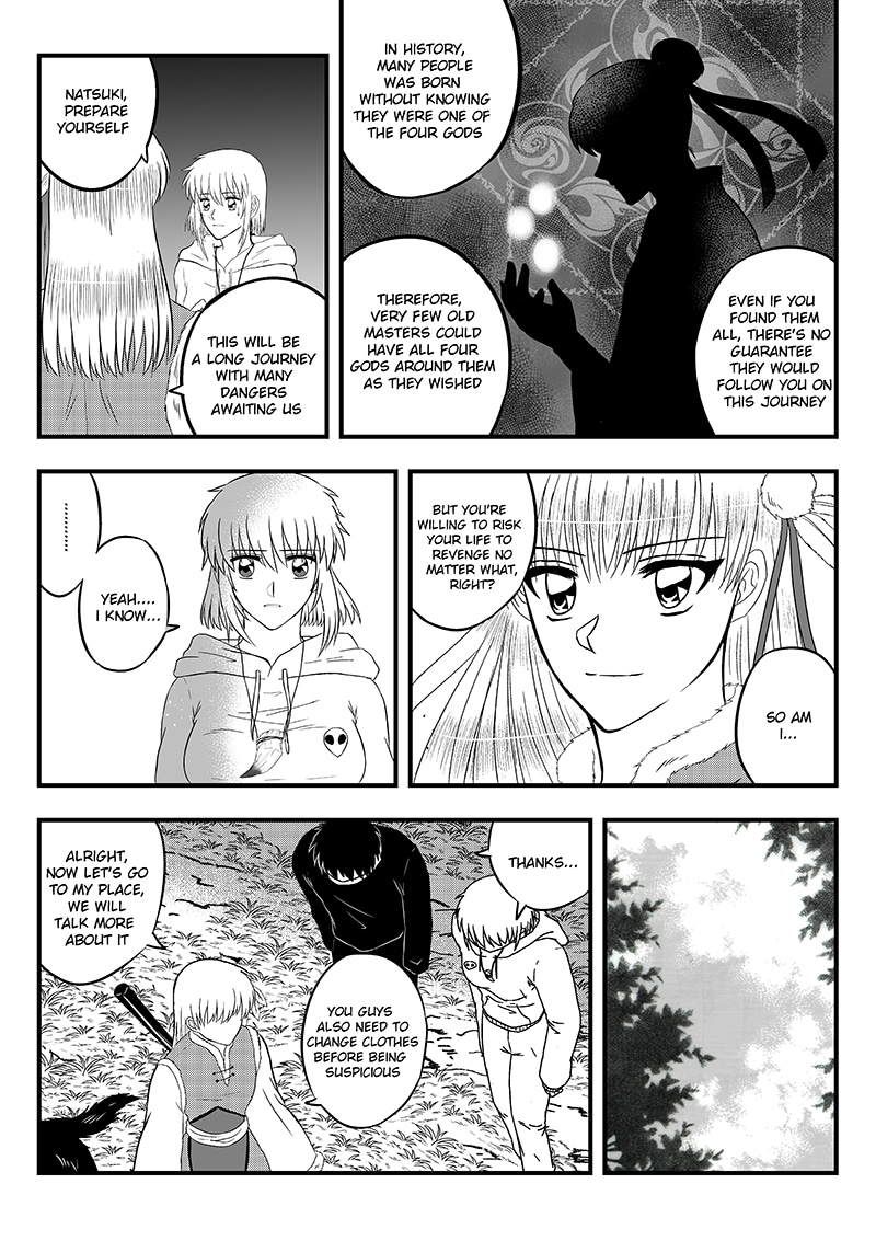 Zengouku, a dark demon who always lust for destroying the human world, had murdered Natsuki's parents to usurp "The Four Gods Treasure", as known as the most powerful and dangerous weapon. However, many things had happened that made the power inside the treasure exhausted and dispersed. To kill the immortal demon, Natsuki and her comrades have to look for the four gods in order to recover the lost power of treasure.