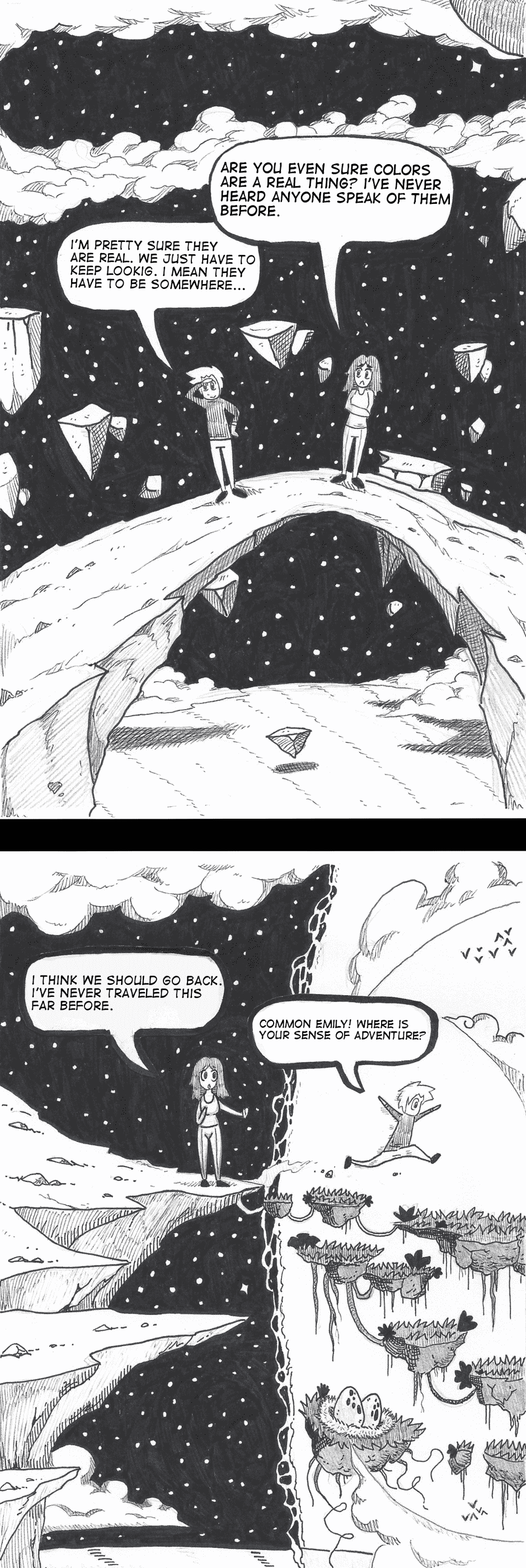 Doubt enters your awareness when new ideas conflict with what you currently believe is true. In search for color, the two find themselves at the edge of a new realm.