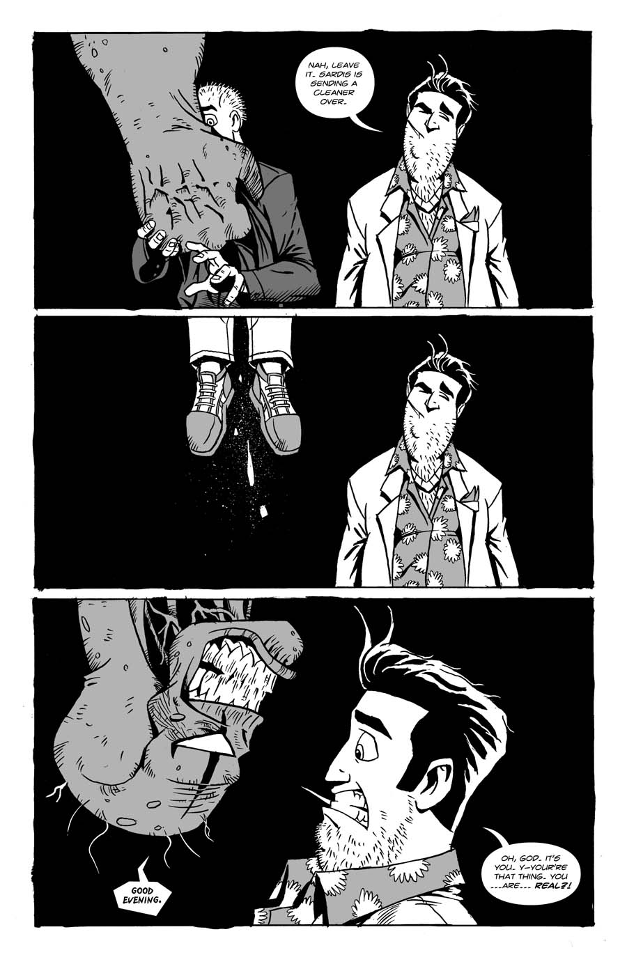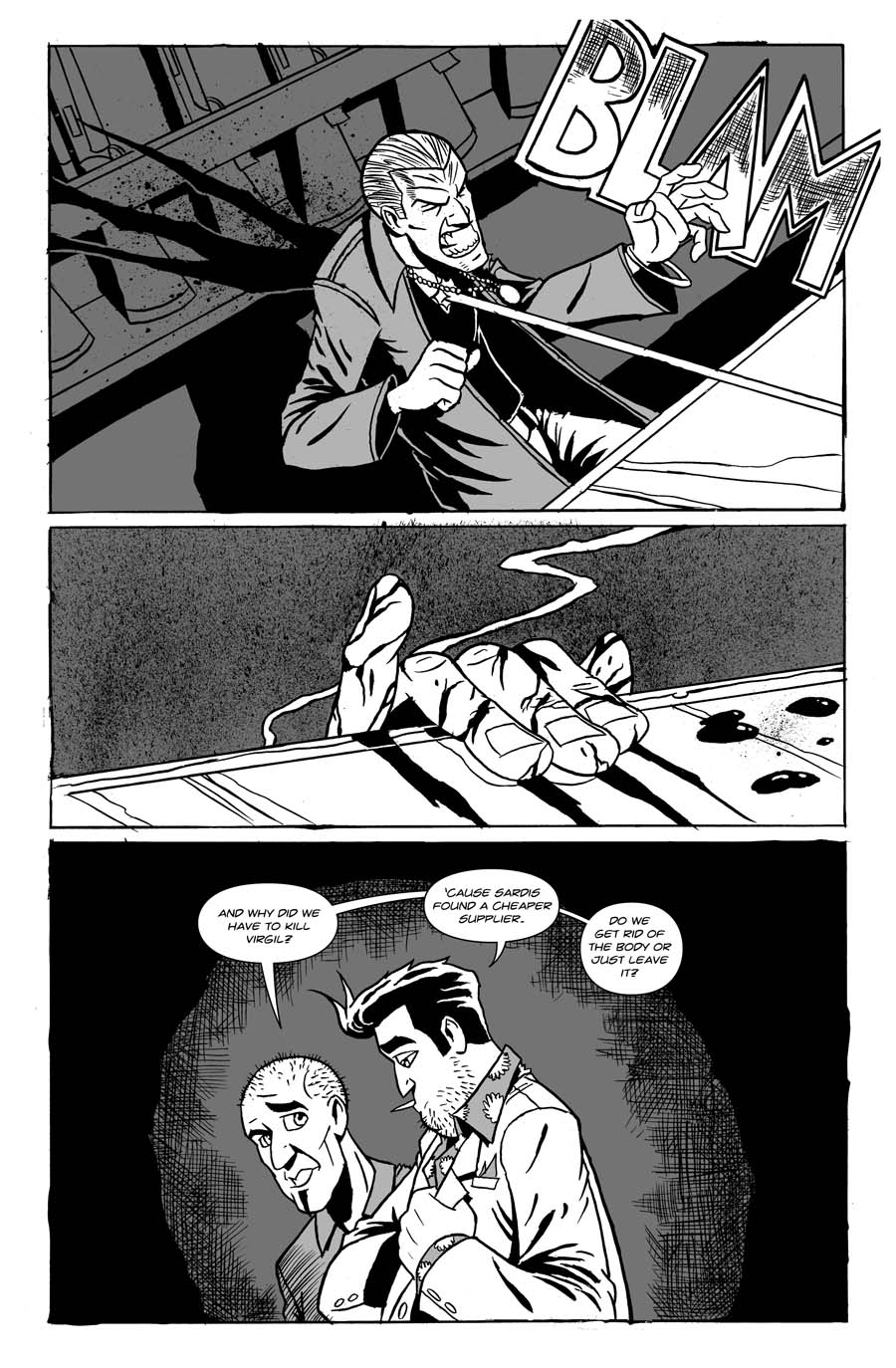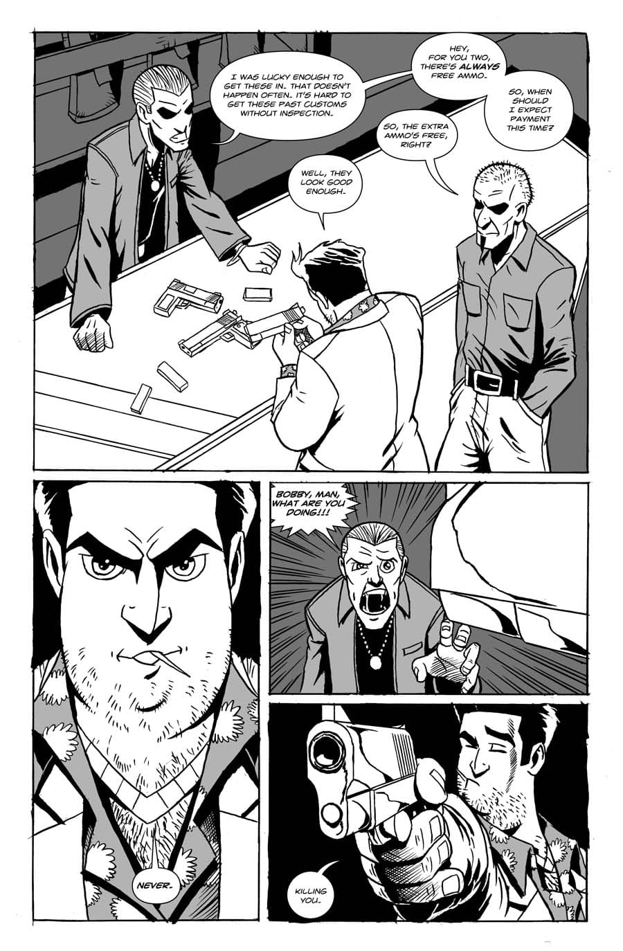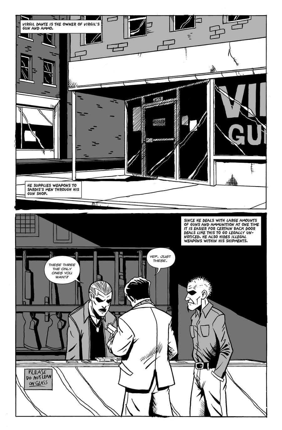 Two gun runners encounter horror in an underground gun store.