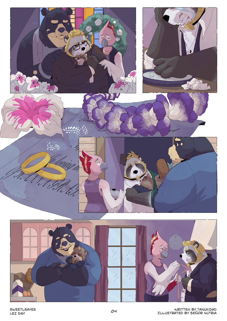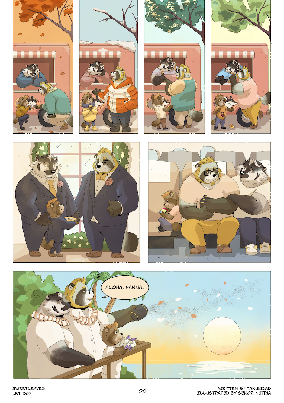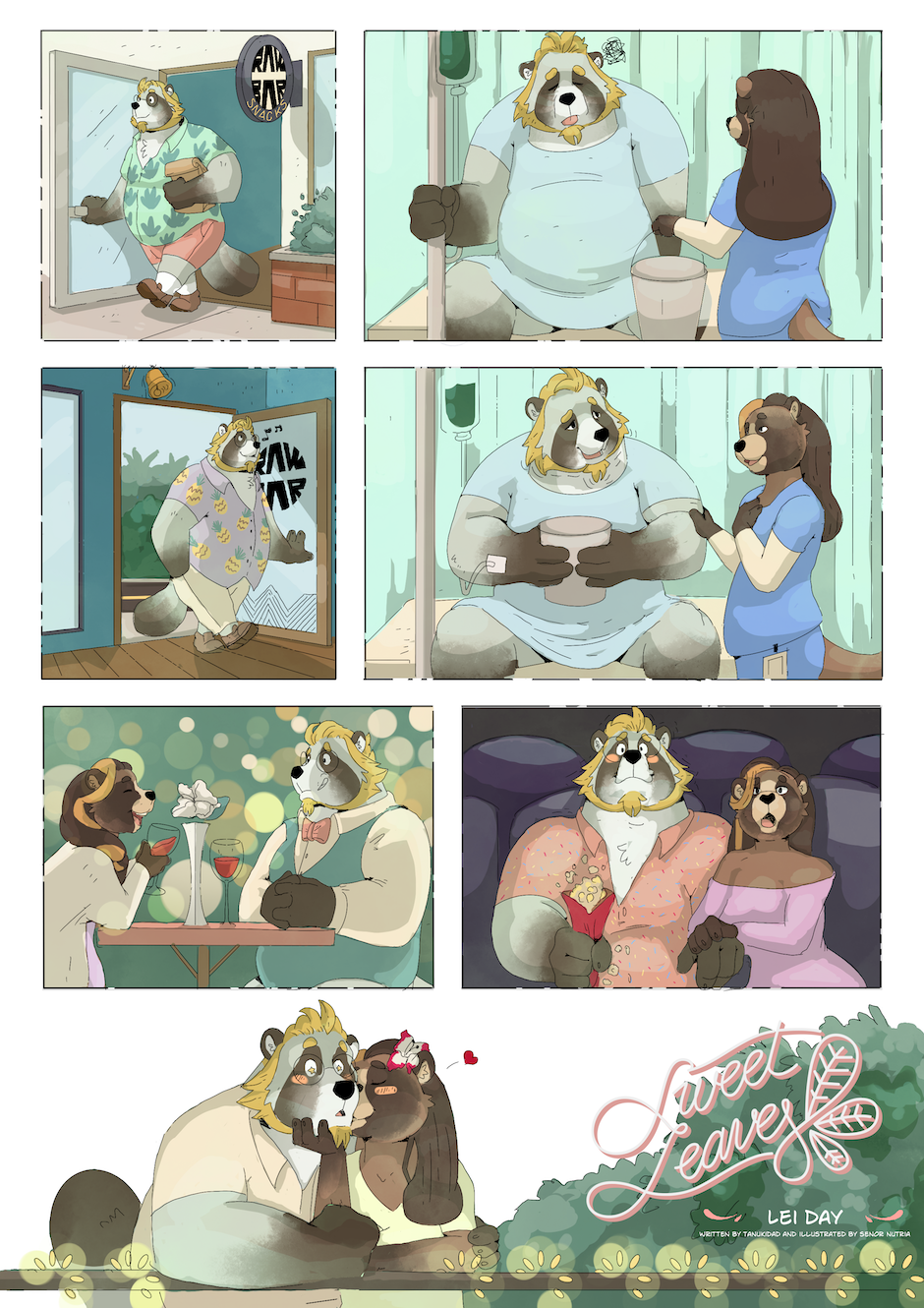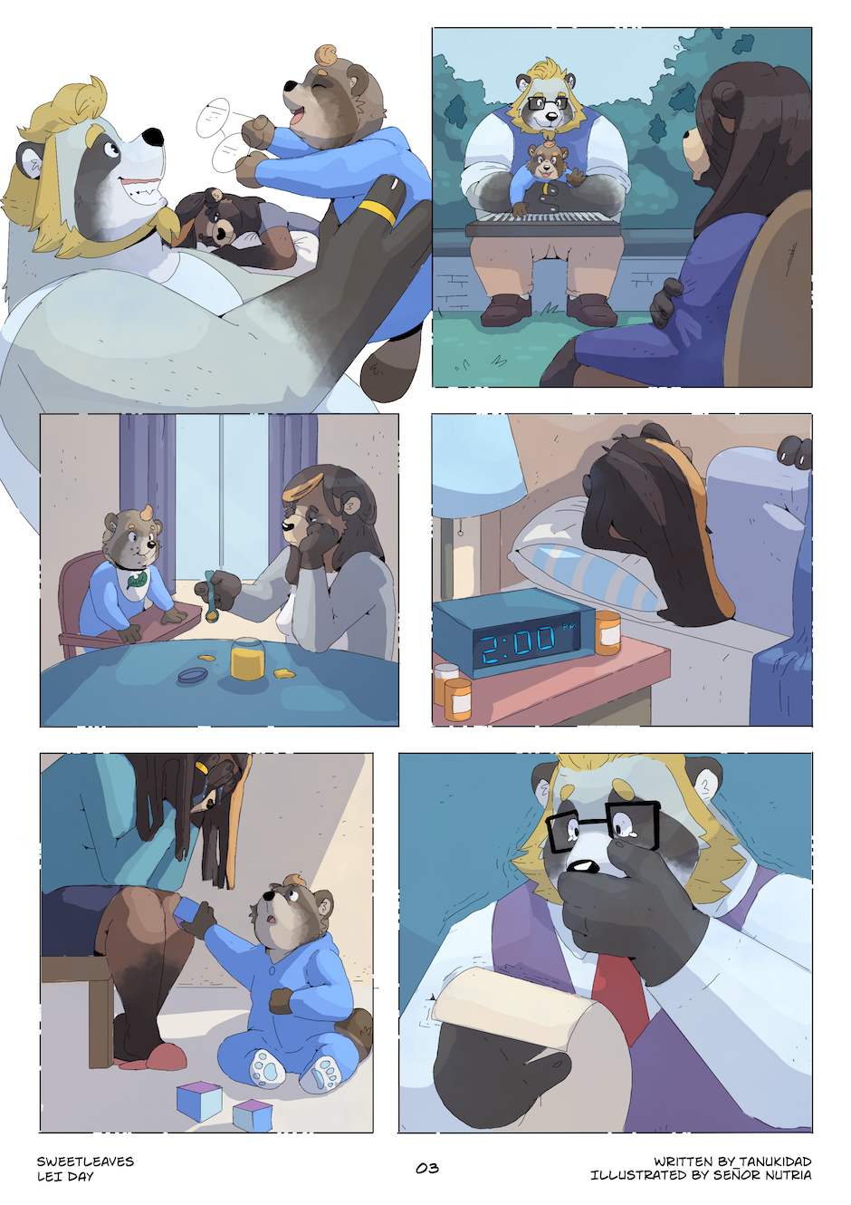 Sweet Leaves is an anthropomorphic slice of life digital comic centered around the Grainger family - two loving dads, their precocious son, and their close knit circle of friends. Sweet Leaves explores the dynamics of the family you're born into, and the family that chooses you - all told through the lens of fantastical whimsy and magical realism. Seriously. Things get pretty wacky.