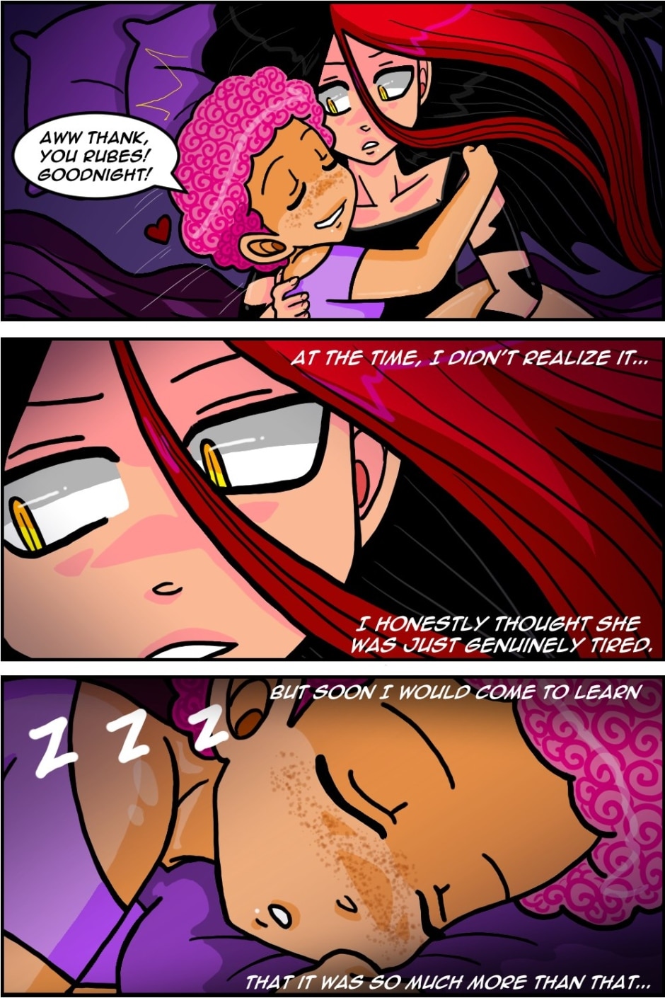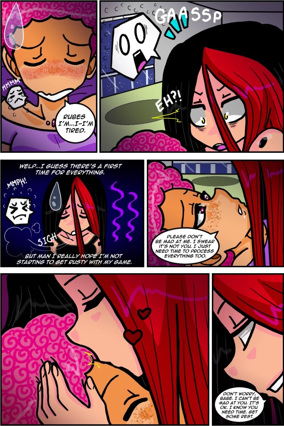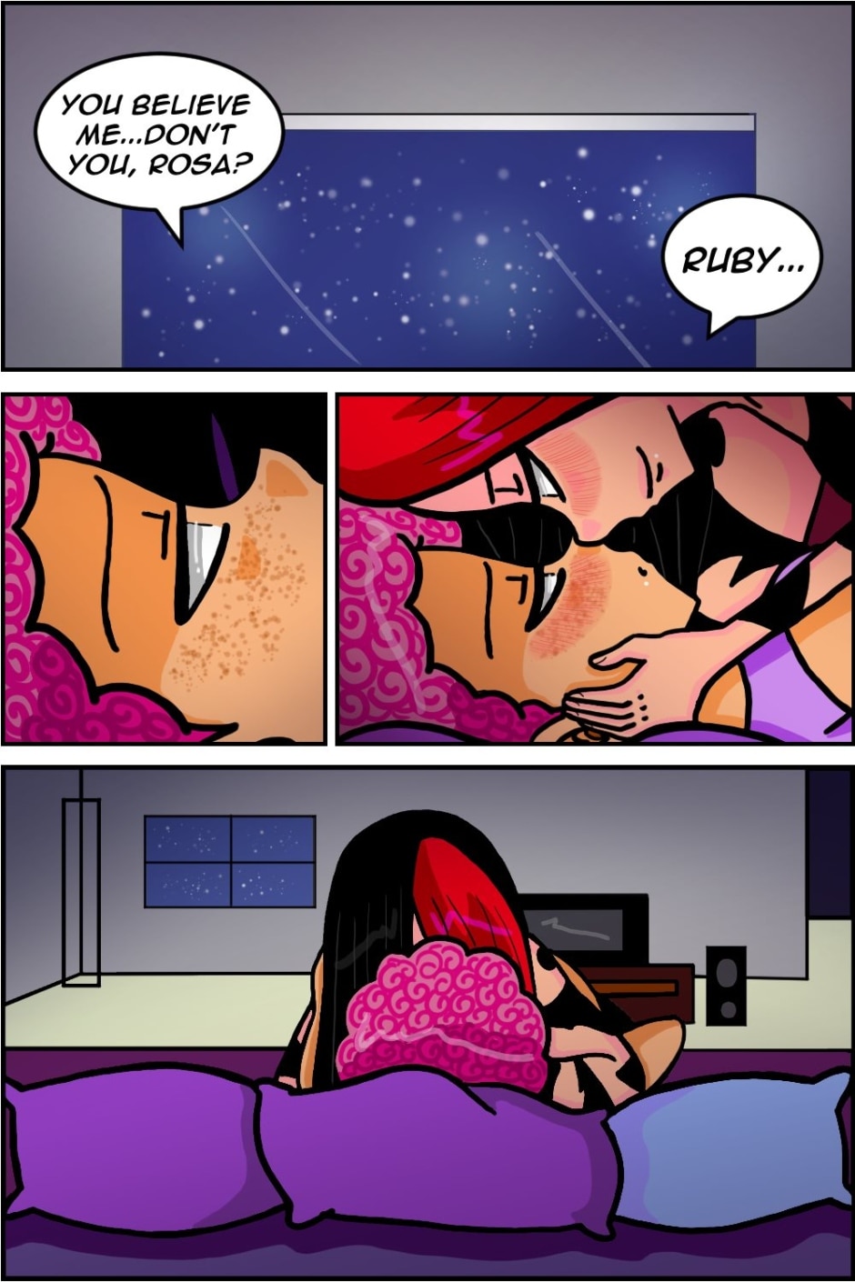 lol Soooooo yea this is definitely the first time Rosa has ever declined sexual advances from Ruby!!! XD But at least Ruby is understanding and knows Rosa needs some time to regroup. Communication is EVERYTHING guys!!! SERIOUSLY!!! lmaoooo