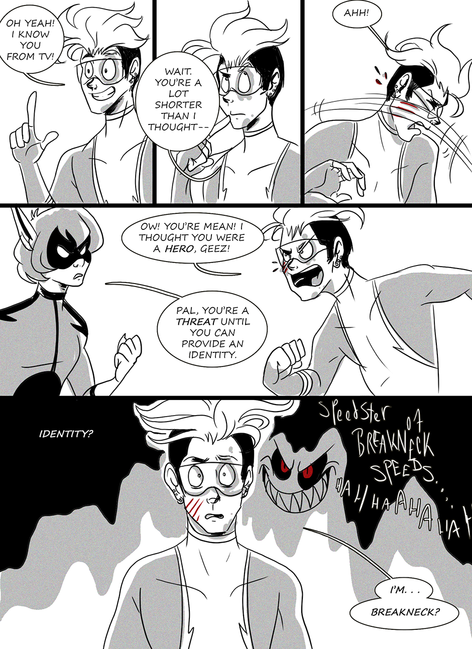 Vinnie Valvo is a college kid with super human speed. He mocks the professional heroes and decides to do the vigilante thing on his own. Once he crosses paths with real villains, his life takes a wild turn with new adventures and challenges as he struggles with anxiety that grows heavier with each interaction with evil!