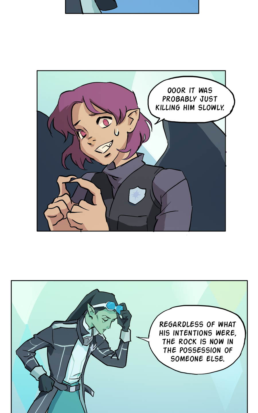 A pair of masked heroes wake up in the castle of an Archdemon, given the task to protect their master at all costs. However, things don't go as planned. This is a comic about alter egos, aliens, murder, memory repression, and finding your place in a universe that hates you.