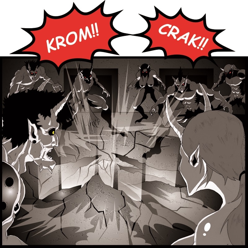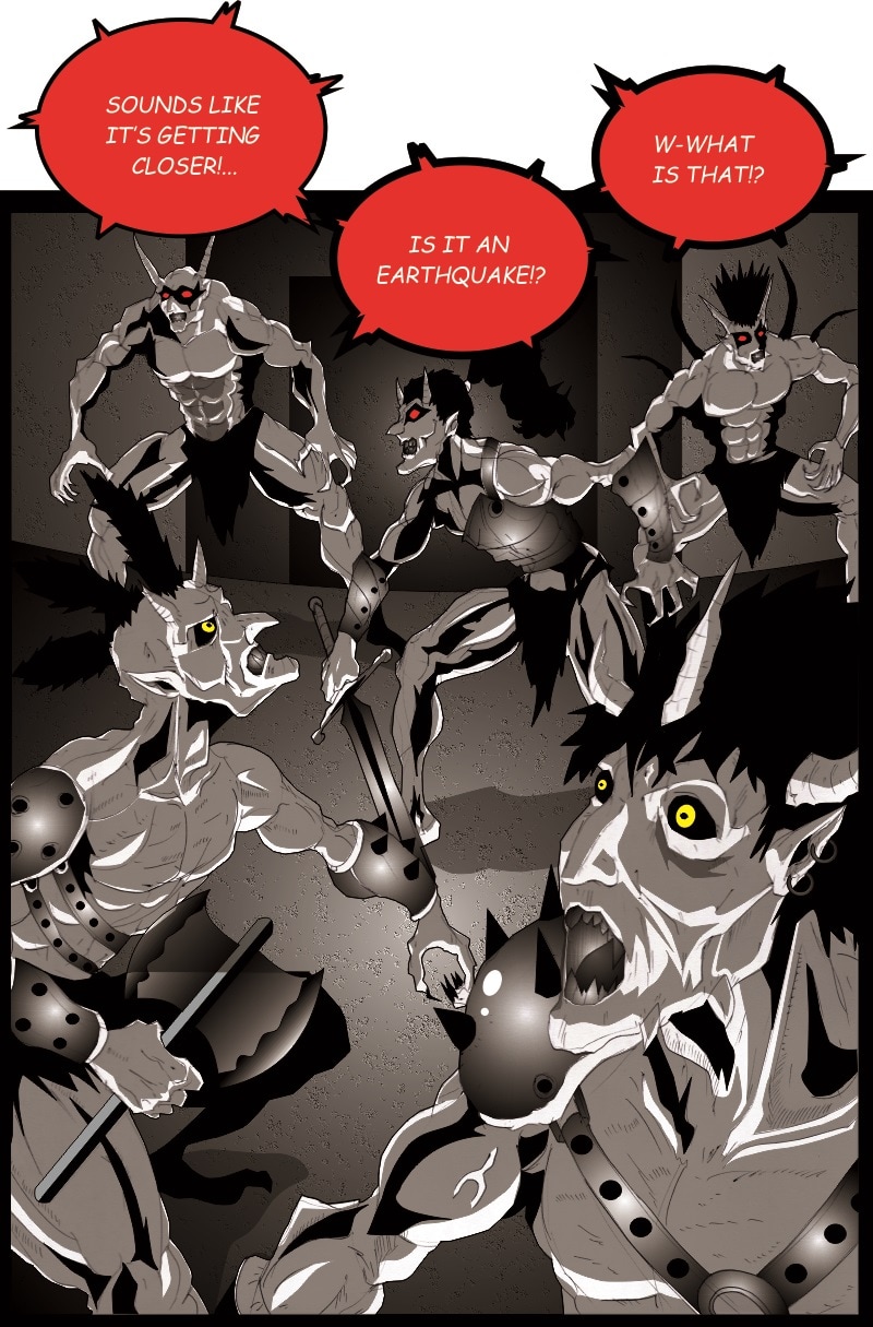 The three finish off the remaining demons and defeat the demon queen. They rescue the survivors including