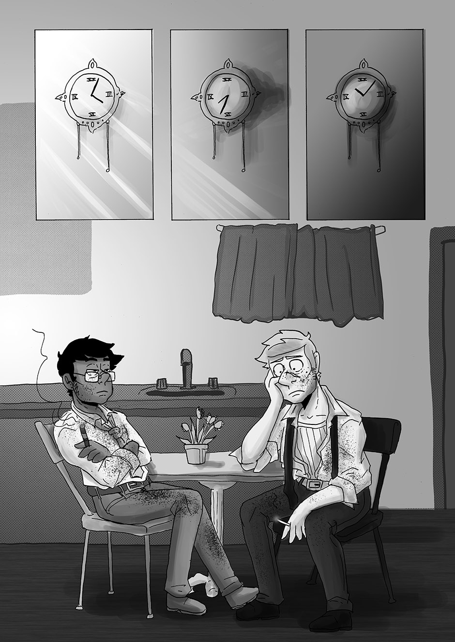 The differing forms of vacant stares really did it for me