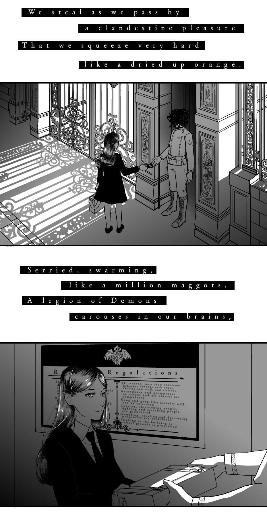 And yet we feel no horror in that rank advance.”