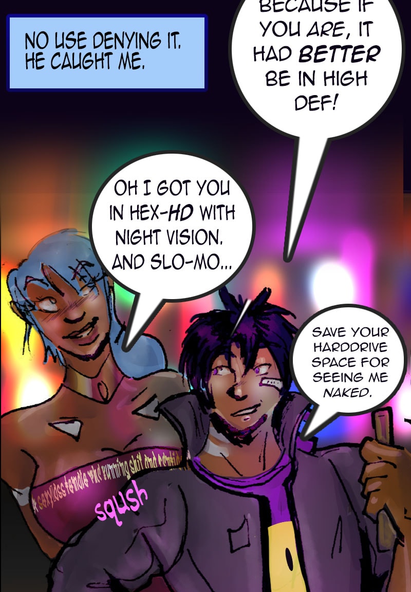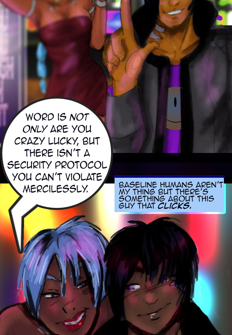 Love, sex, and Nanotech! A ticking time bomb hacker and a war vet in the same situation join forces in a wild 'bucket list' adventure for credits and thrills Will the two find love and a way to outlive their expiration dates? Or will they succumb to the same forbidden technology that has kept them both alive? Cyberpunk Scifi and adventure, meets ero-romance and horror. All LEWD scenes on patreon. Updates 1st & 2nd Mondays