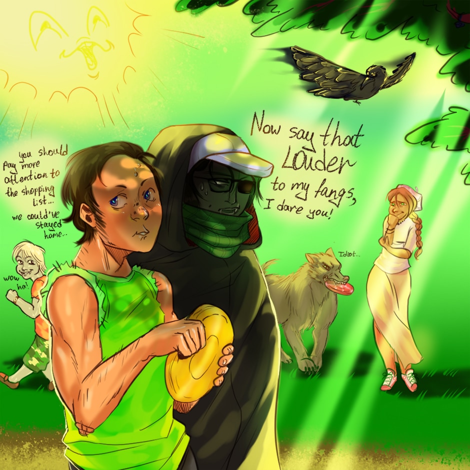 There are plenty of stories about werewolves and vampires trying to get along... Yet here's another one! A friendy and sweet tale of happy over-energetic vampire and his gentle doggish best friend, living their best supernatural lives in a creepy house, fighting any difficulties and hate (mostly coming from the humans) and making even more frieends along the way!