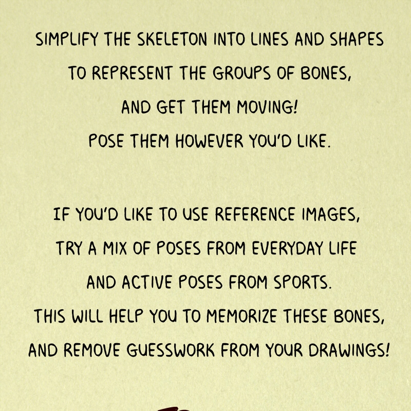 Wow, these lessons are awesome, prof! It was a great introduction. I have zero experience in drawing, and now (using also what I've learned from the lessons about measuring and gestures) I've probably sketched my first non-totally-stick-y-men skeletons since...ever. lol (the proportions are wrong and I simplified hands with ellipses, but... yeah). Thank you so much! =)
