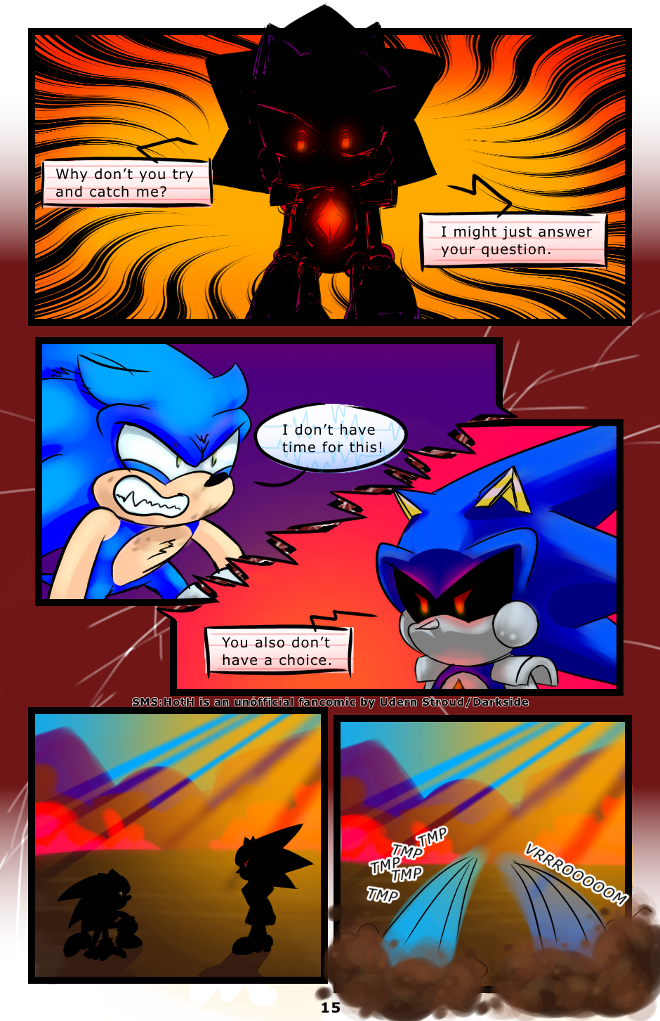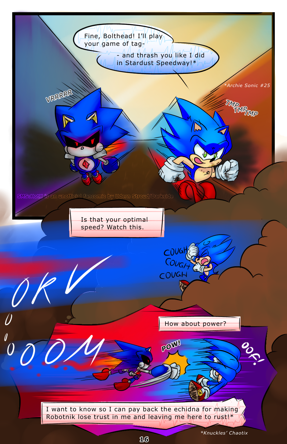 In the original issue (Archie Sonic #86) Sonic and Shard 2.5 fought for a little bit. I was initially going to leave that out, as i thought it would slow down the pacing, but decided to make a couple more pages and include a short skirmish before 2.5 tells Sonic about Tails.