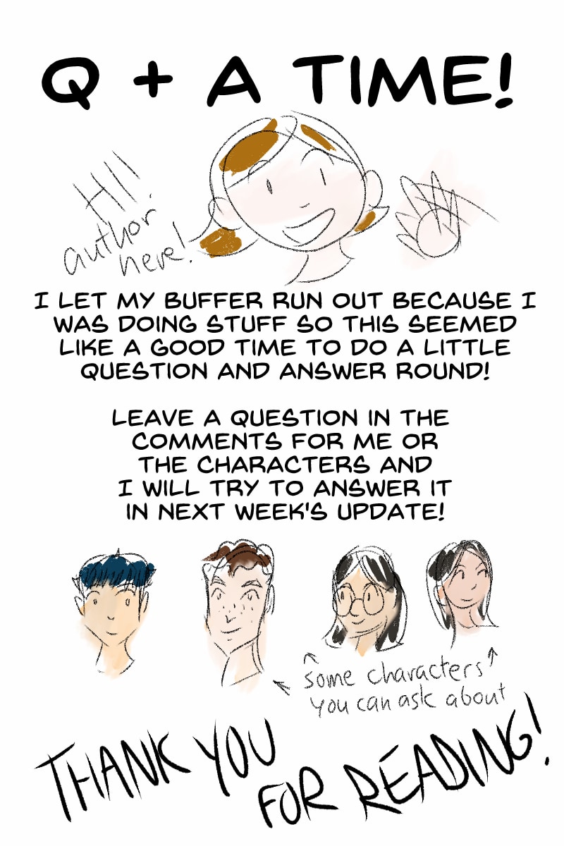 in case you scrolled past it it is now QUESTION AND ANSWER TIME your qs and as will be answered NEXT WEEK!! I'll be posting this on webtoons as well and then collecting qs from both places (or making up qs if no one asks any. we'll see)