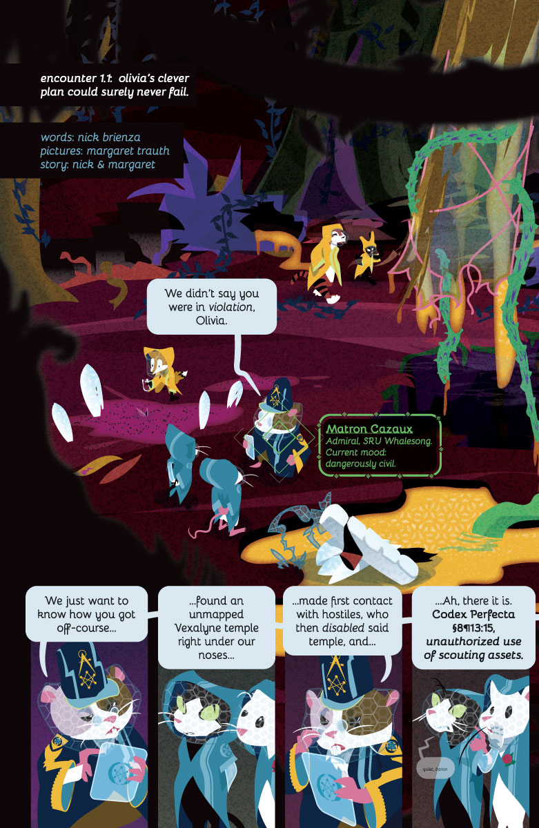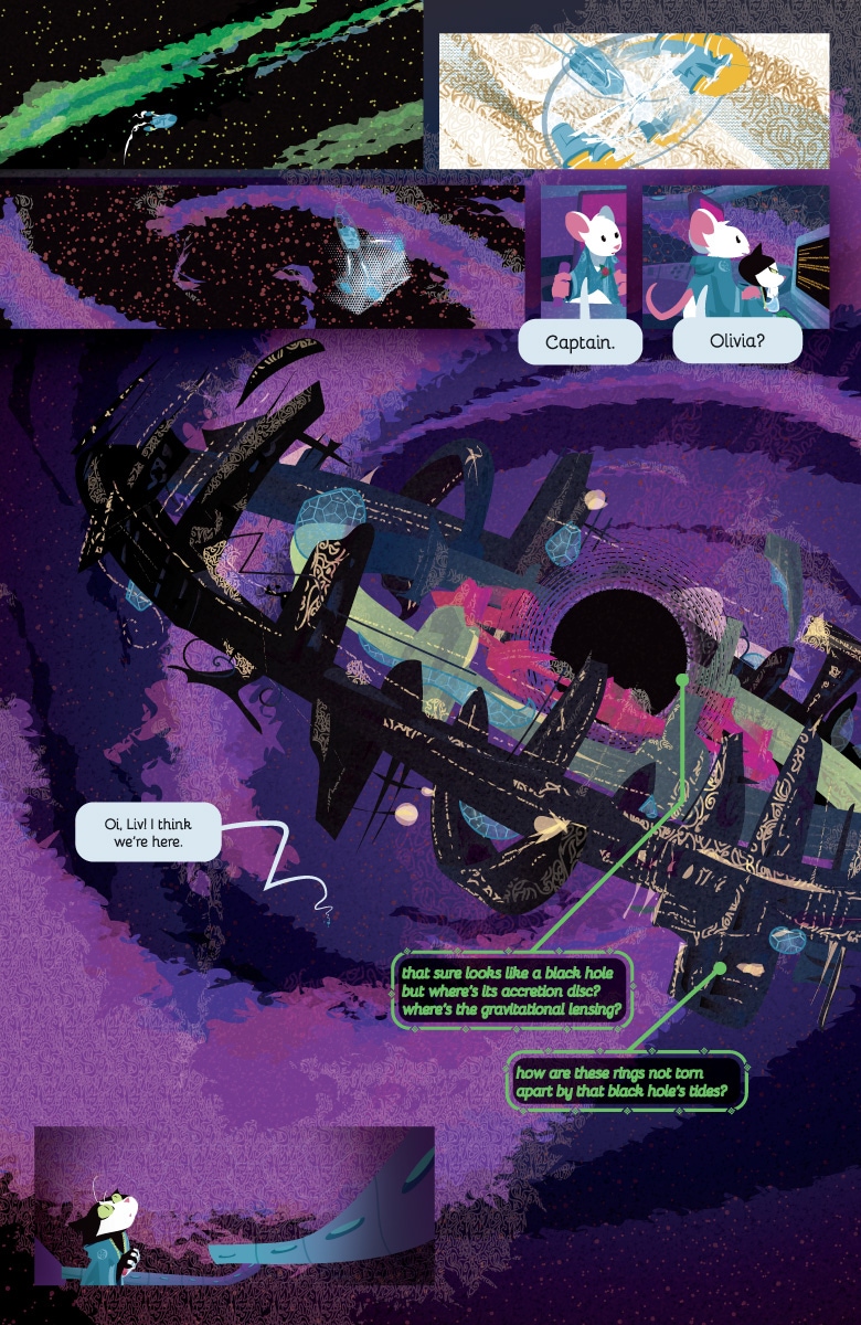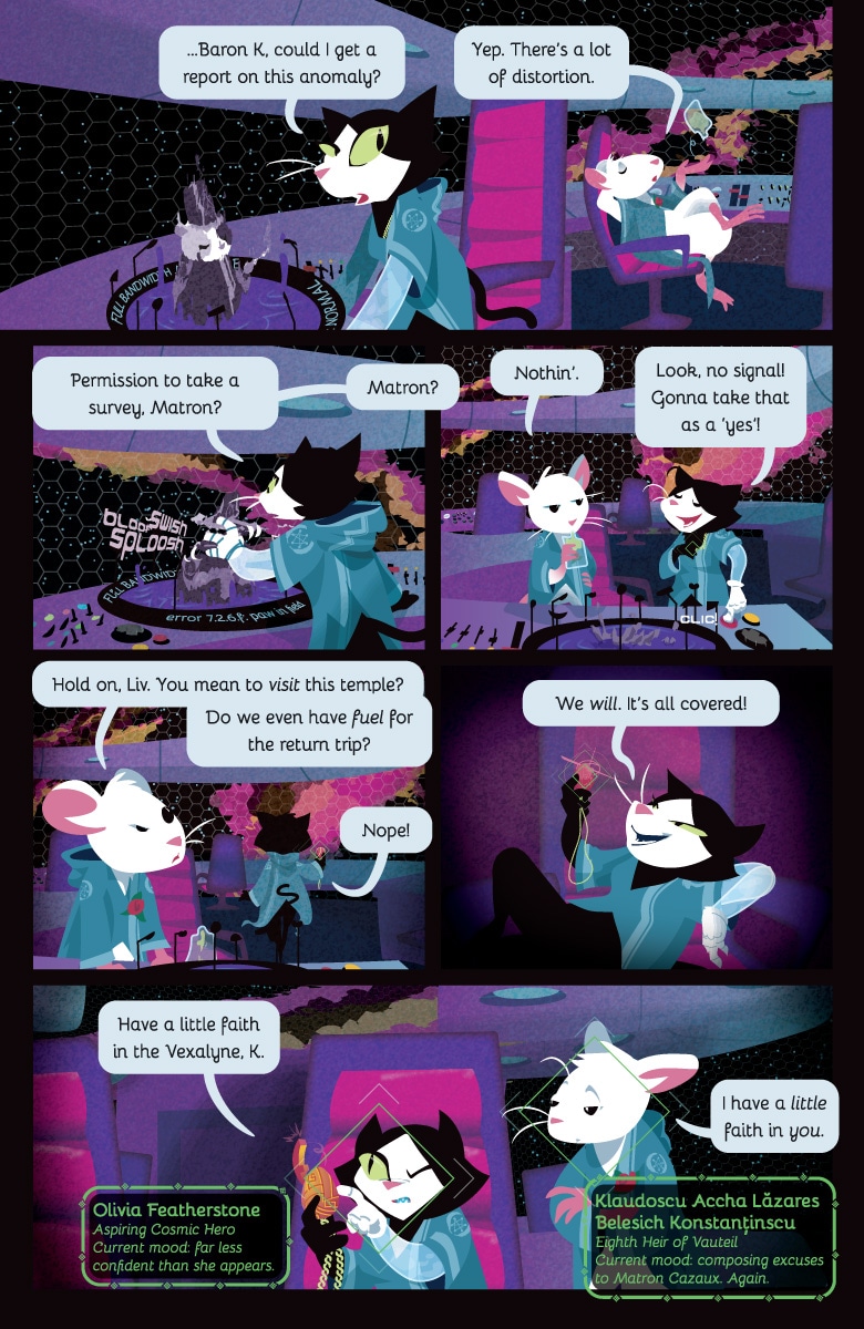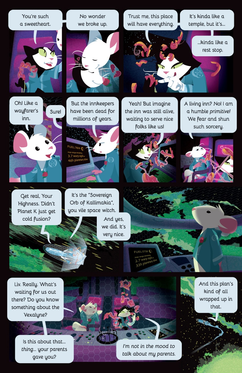 It has a very clever space kitty. It has a pretty bird and pony who love each other very much. It has a noble mouse prince who looks killer in an evening gown. It has a weird old lady who may also be a black hole.