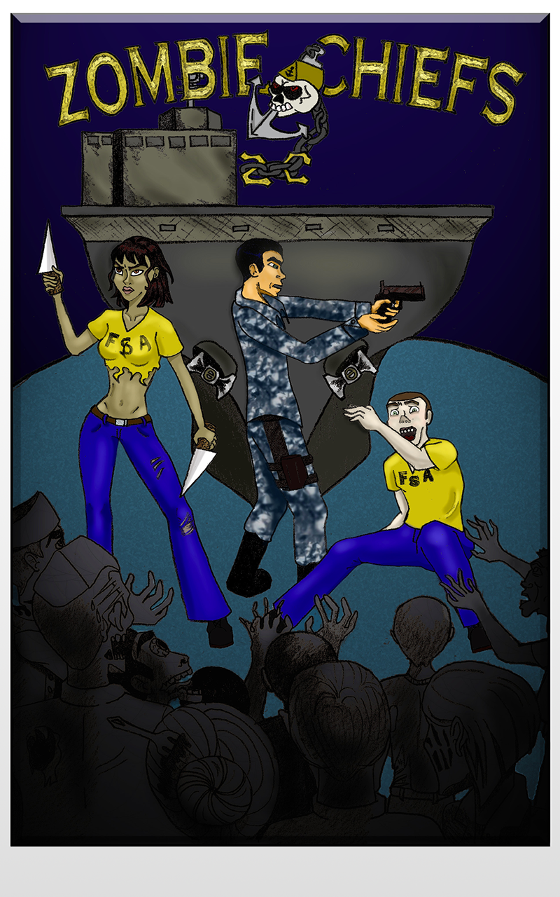 Living on a Navy ship was never easy, but it got a whole lot harder with the zombie virus outbreak. What started in the chiefs mess is quickly spreading throughout the ship, and with no shore in sight, ship life reaches an all time dog-eat-dog high. My first comic, drawn on deployment using an iPad, turned vertical!