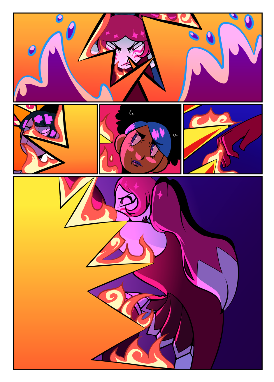 You may wonder: Why isn't Junko getting burned? Since she's a fire specialist battle mage, she has increased resistance to her own specialty element. Anyway, I love coloring fire. Coloring water is still my favorite but fire is nice