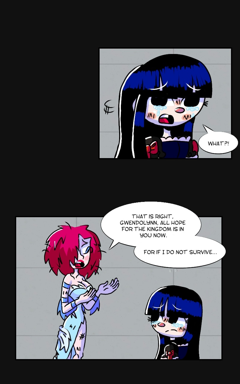 Nooo!! That's so sudden! 😢 I hope the Queen will survive and reunite with Gwen eventually!