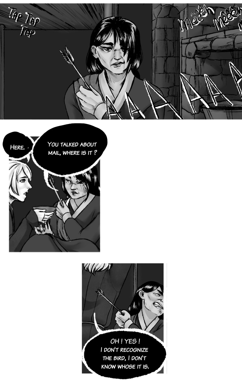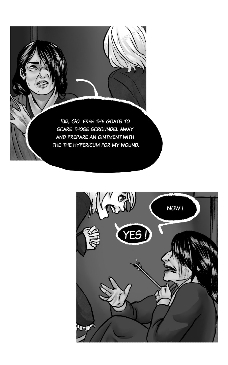 The story takes place in a Ville Neuve from Champage where Geoffroy is isolated by his red eyes. This causes the villagers to believe he's a demon who would curse them. One day, he encounters a healer known by the name "Mire aux oisels" who will teach him the basics of medieval medecine.