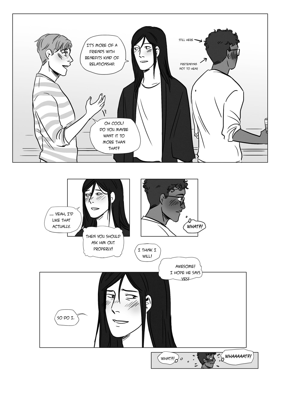 Sorry for the slight delay in posting these pages, I got to the end of my planned updates. Getting another bunch ready so it won't happen again! Also apologies for not replying to comments, I didn't see the notifications and haven't been checking tapas regularly but they mean a lot to me! Thank you all for your support! ♥