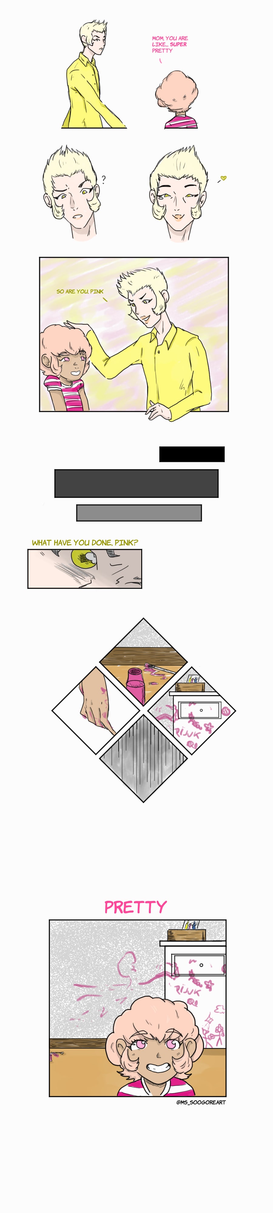 Right now I'm on a brief pause because of my studies and job but I want you to know that I'm so grateful for the good reviews, the people reading my comic and the support! So here is a short comic with Pink and Yellow that I hope you like. It's based on a @vianabanjo's tweet.