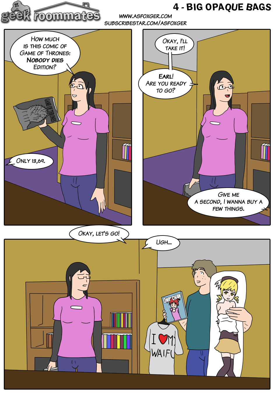 Geek Roommates tells the misadventures of two 20 year old nerdy roommates: Lauren, a girl who likes playing videogames and watching movies related to the nerd culture, mostly western nerd culture; and Earl, a boy who likes playing videogames (too!) watching anime and memes. Follow their lives with their vast cultural differences!