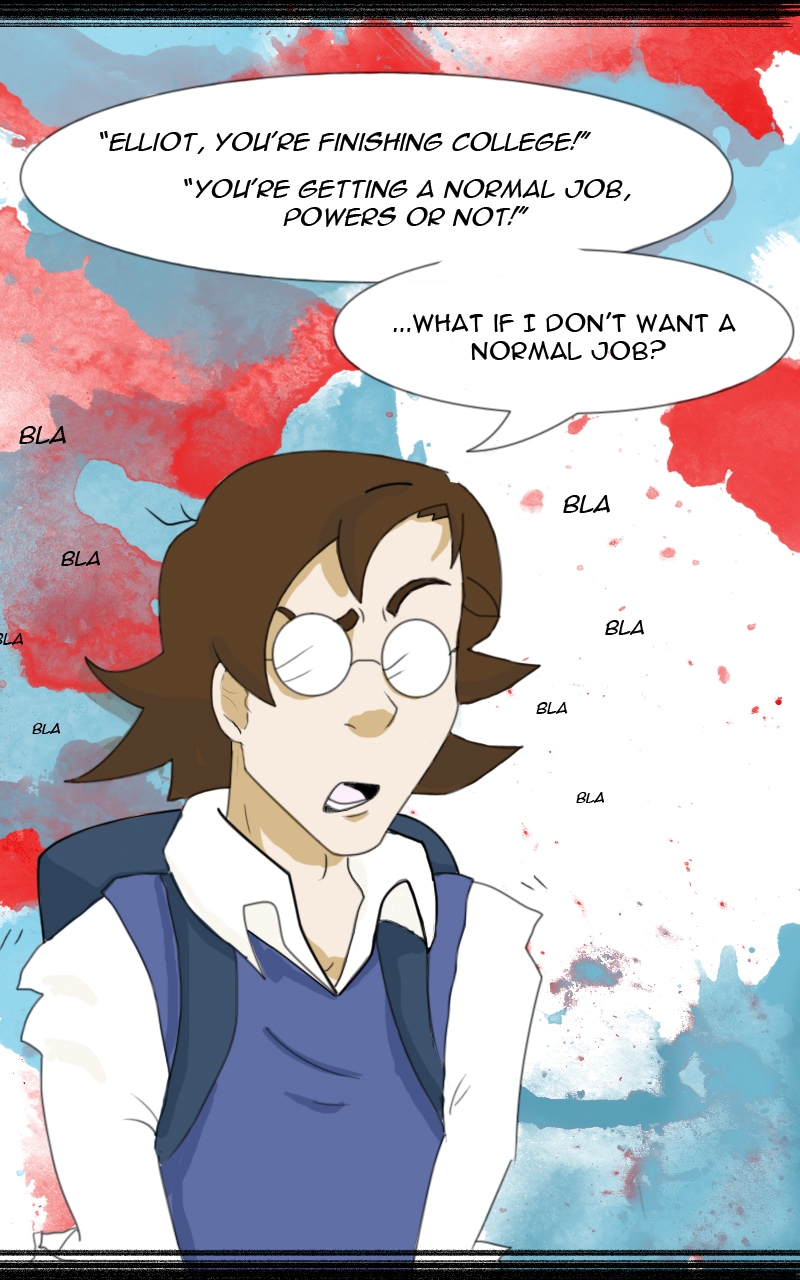 Elliot's last hope for a normal senior year in high school is destroyed after a series of blackouts leads him to discover that he is a Super! Superhuman, that is. Watch him find love and stand up to enemies as he tries to figure out who he is; a gallant hero, or something else. *Contains strong language, adult humor, blood, violence, and some generally triggering scenes. I try to update twice monthly, for now!