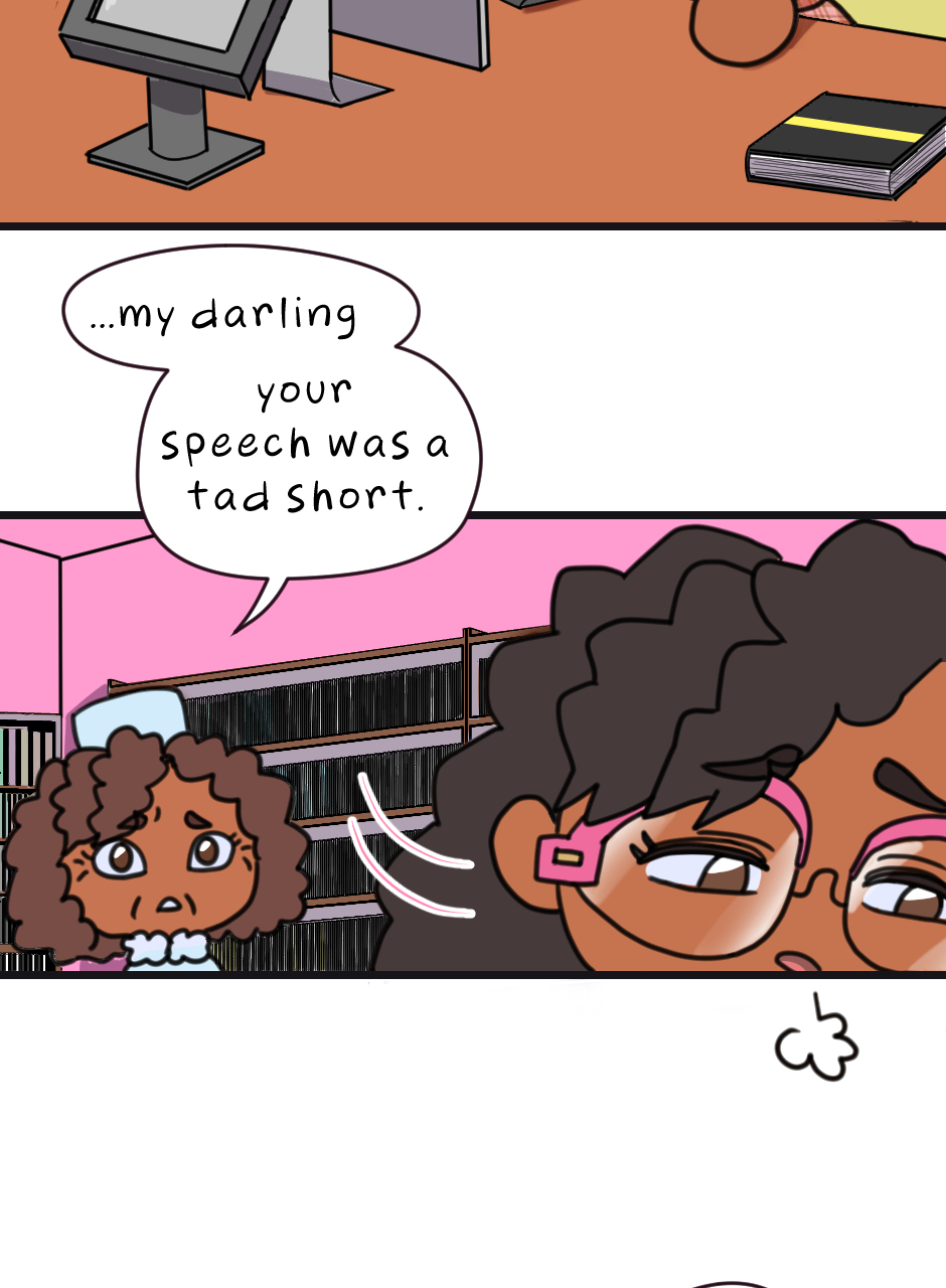 It's where our MC left off. XD Also side note: I love writing speeches but when it came to giving them, I couldn't face my fear. :(