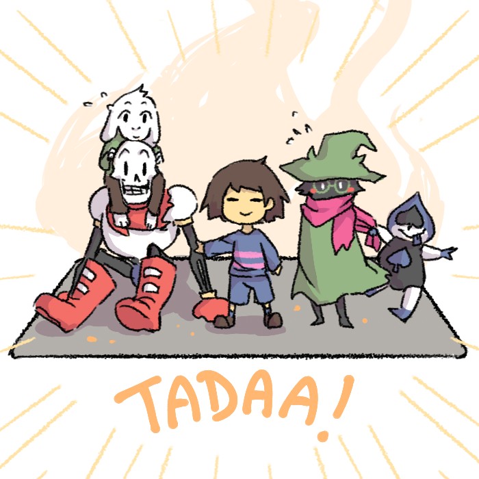 Just a random wholesome comic (that I was putting off colouring)! I'm pretty sure a few people have done it before with UT/Deltarune though, so sorry if it was too predictable or anything orz