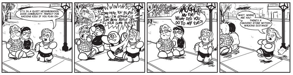 Ninja and Pirate have been roommates ever since Ninja graduated college, however life isn't as simple after school as one would hope. Whether it's falling in love with the Valkyrie next door, fighting with an owl, or getting abducted by intergalactic bounty hunters Ninja and Pirate's life is anything but run of the mill. A mix of character-driven storylines and one-off gag strips, Ninja and Pirate is a one of a kind goofy family-friendly romp that you won't regret guaranteed!*