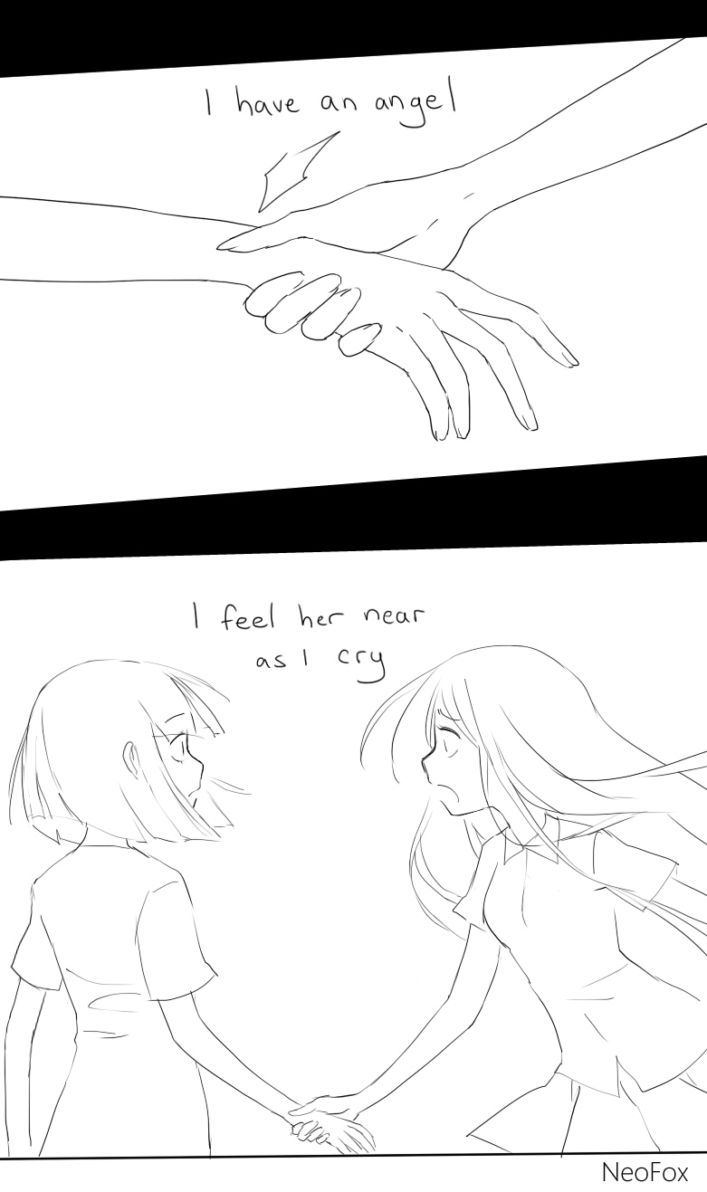 My Angel part 2 is a very much the opposite of part 1. In part 1 the Angel signified freedom in death. When I wrote part 2, I wanted to use that symbolic Angel to show what had changed. When I was at my worst I felt I had no people to talk to, and those who were there were busy with issues of their own. But, by pure chance, I found people who accepted me, who would listen to me and care about me. I have made many precious friends since then, and even rekindled old friendships anew. All those friends who helped me stand up and take the pain, and continue to look out for me... You are all my Angel.