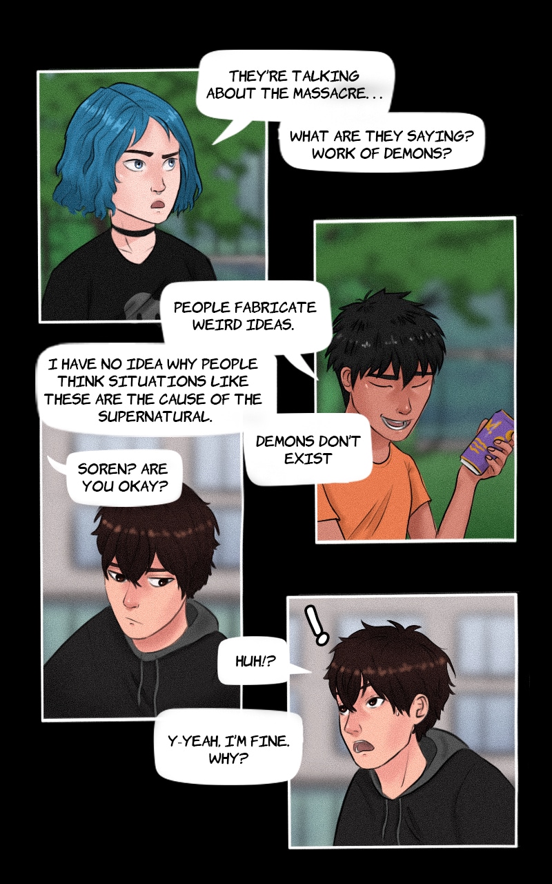 A world once inhabited by many spirits, is now dull with their absence, as humans began to drive the spirits away a long time ago. Demon like creatures were created to remove the humans and restore balance, however, Soren, an ordinary high school boy, gets unexpectedly caught up in it all, and has to decide which side he's on.