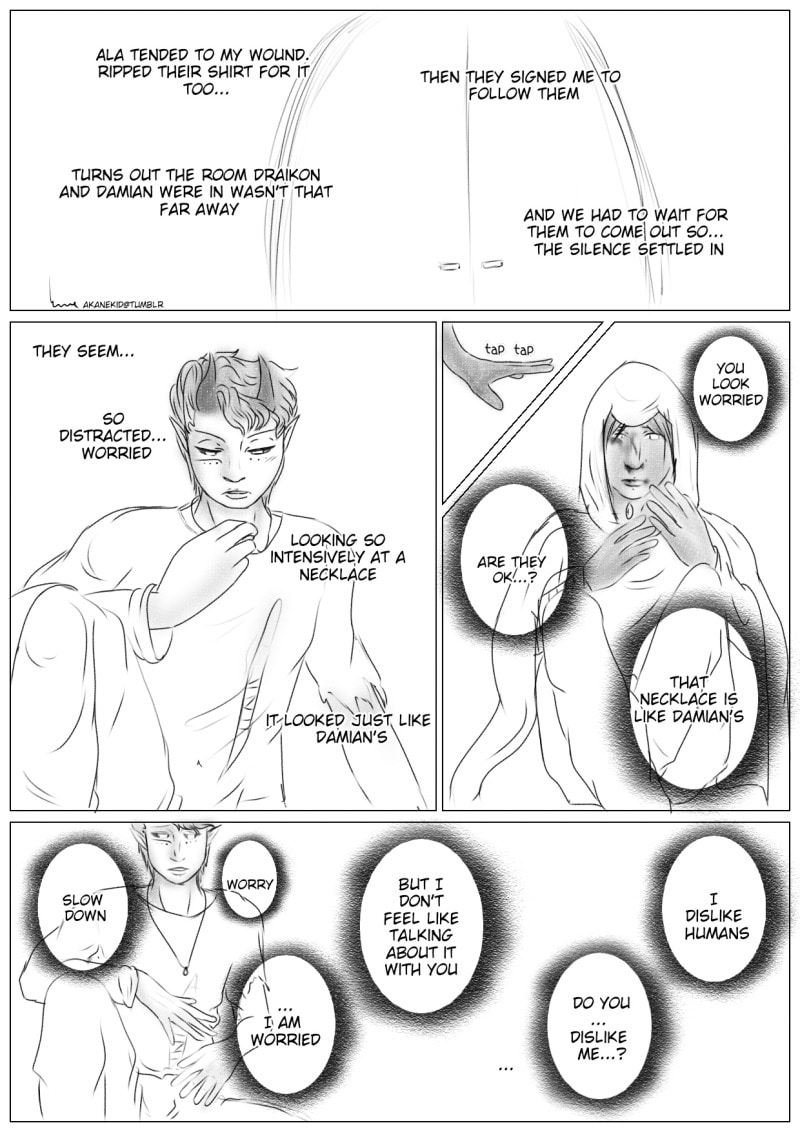 A human awakes in a strange world in a dangerous predicament only to be saved by a gentle and kind Demon who promises to do everything in his power to help the human reach freedom, even if that poses a risk to his own safety. A story of love and kindness in an ugly world where cruelty is the norm. This work contains a lot of fluff, a touch NSFW, Queer Characters, characters with handicaps and a trans character. If any of this makes you unconfortable then this comic is not for you.