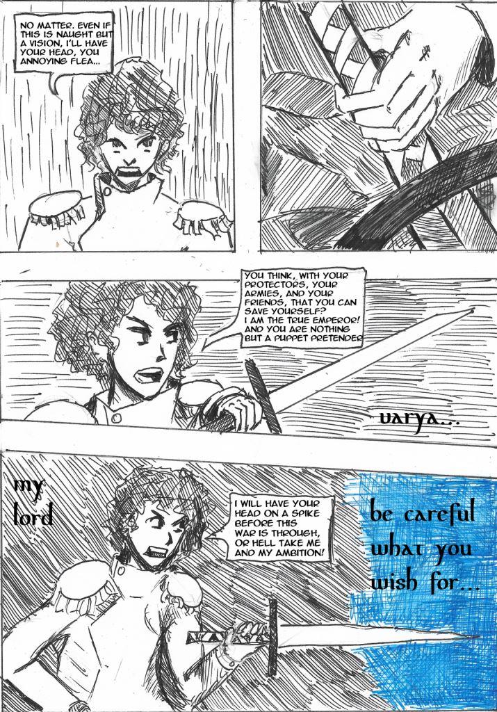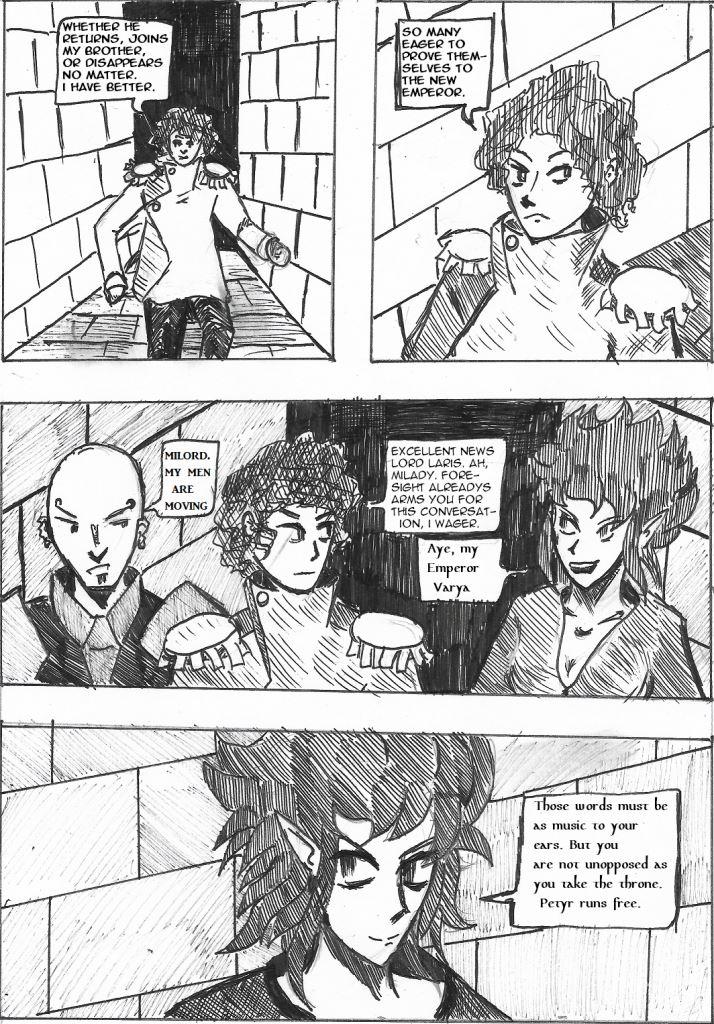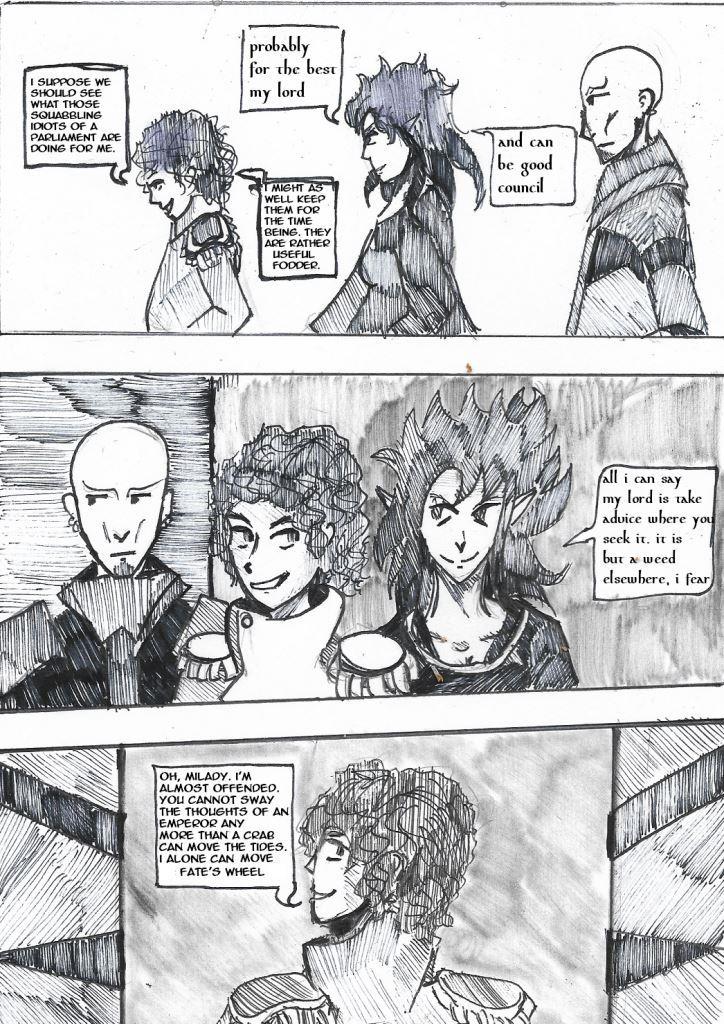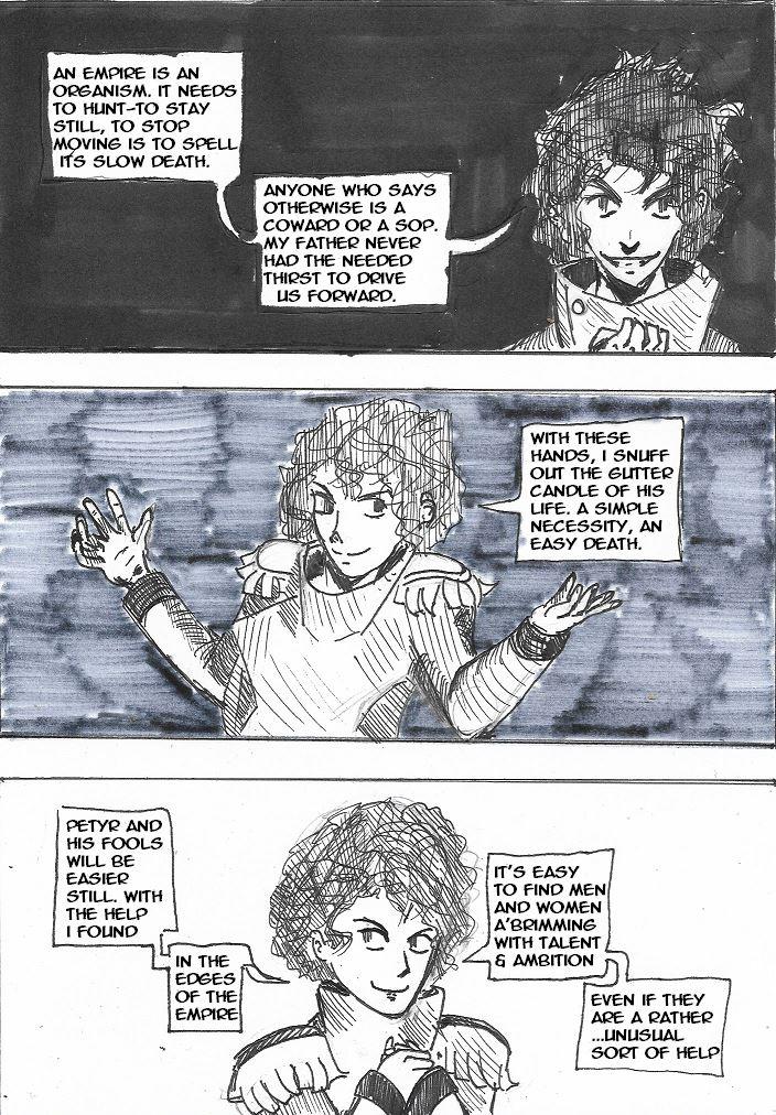 In which bad news is imparted, a prince becomes an emperor, a vison tells of an unexpected enemy, and an omnious council make themselves known.