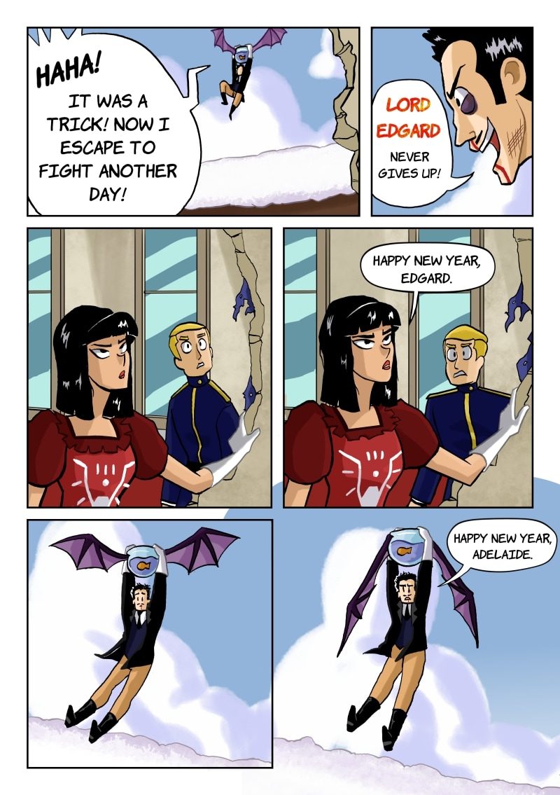 The crazy but mostly harmless Lord Edgard constantly tries to overthrow the overpowered Queen Adelaide, to little success. But this time, he's made a creature stronger than any before. Will he finally defeat Queen Adelaide, and take the Kingdom? Probably not.