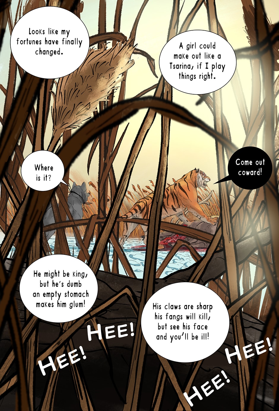 The Wolf and the Tiger have escaped the boar but new dangers await.