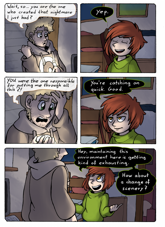 Erisa remains stubborn and demands to create her nightmare too - with dramatic results. The mask of the red death has a cameo in this one.