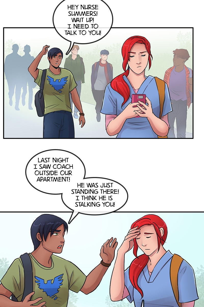 Poor kid is just trying to look out for his kind teacher? She's the school nurse, right? Why was he there though?! Hm.