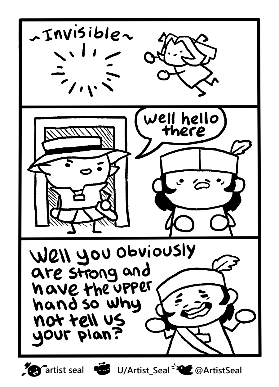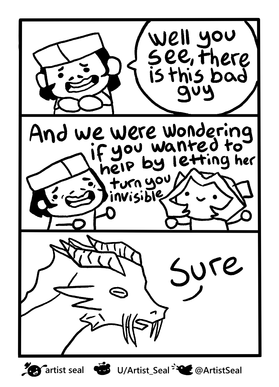 This is a redraw of the old version of this. I didn't really like the old version because it felt cramped and the text was too long because I didn't want it to have too many pages. I also realized that this was a more "you had to be there" moment and that this is an old meme. I still tried my best to make it easier and more comfortable to read and a bit funnier. I hope you like it.